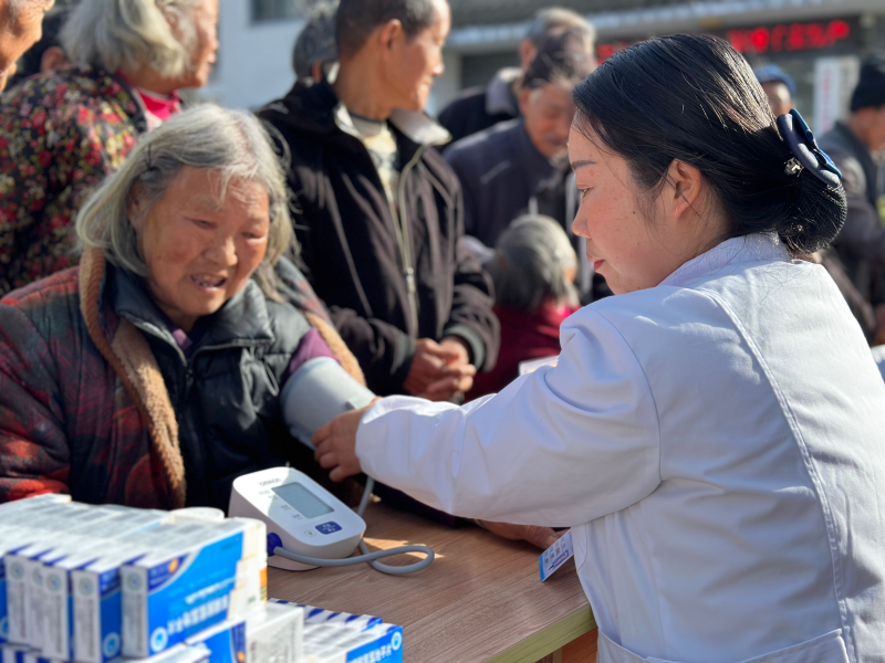 义诊现场,来自内科、外科、中医科等领域的医护人员耐心细致地为村民测量血压、血糖,细致问诊常见病、慢性病,结合村民身体状况提供个性化诊疗建议,开具用药处方,并科普日常健康养生、疾病预防知识,针对老年群体关心的高血压、糖尿病等慢性病管理问题进行详细解答。“在家门口就能享受到县级医院的专业诊疗,真是太方便了!”刚测完血压的村民王爷爷连连点赞,现场氛围暖意融融。