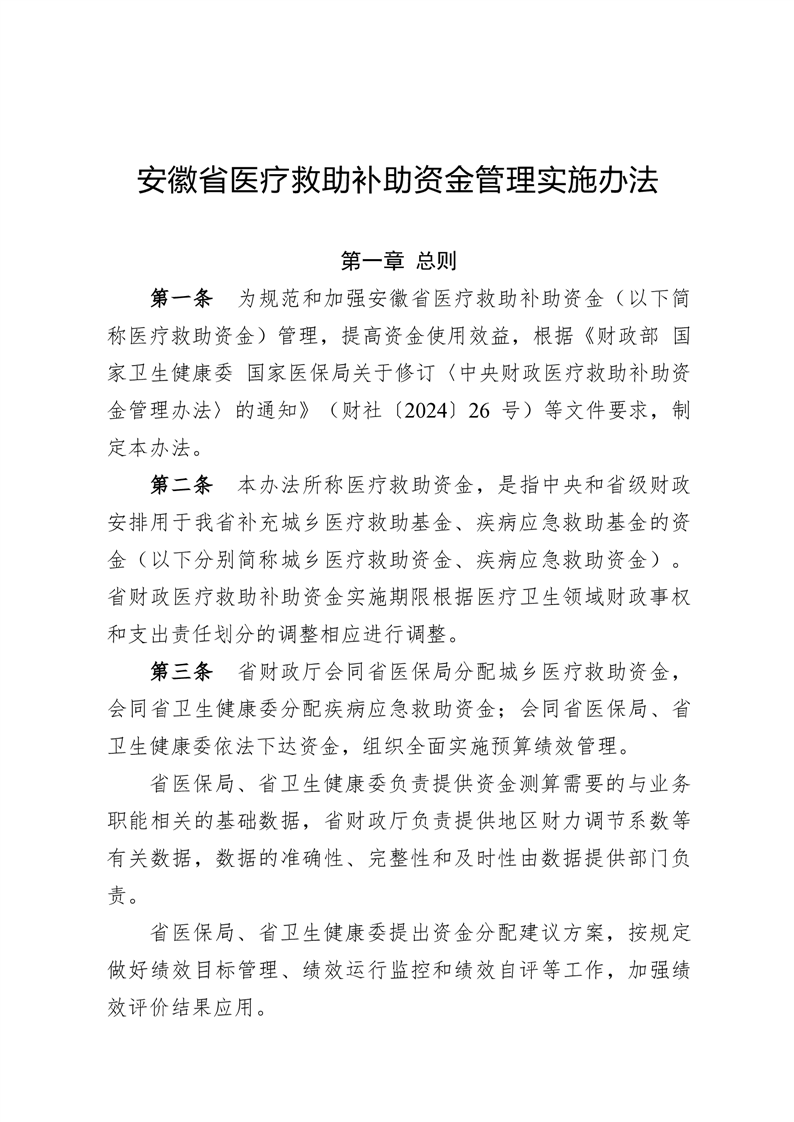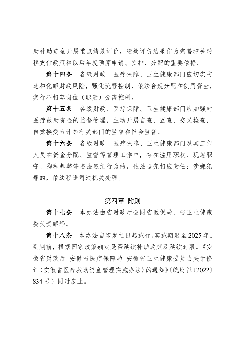 安徽省财政厅 安徽省卫生健康委员会 安徽省医疗保障局关于修订《安徽省医疗救助资金管理实施办法》的通知