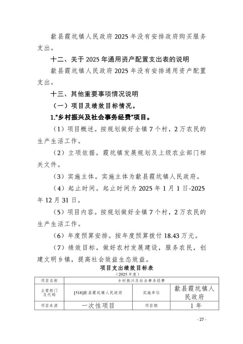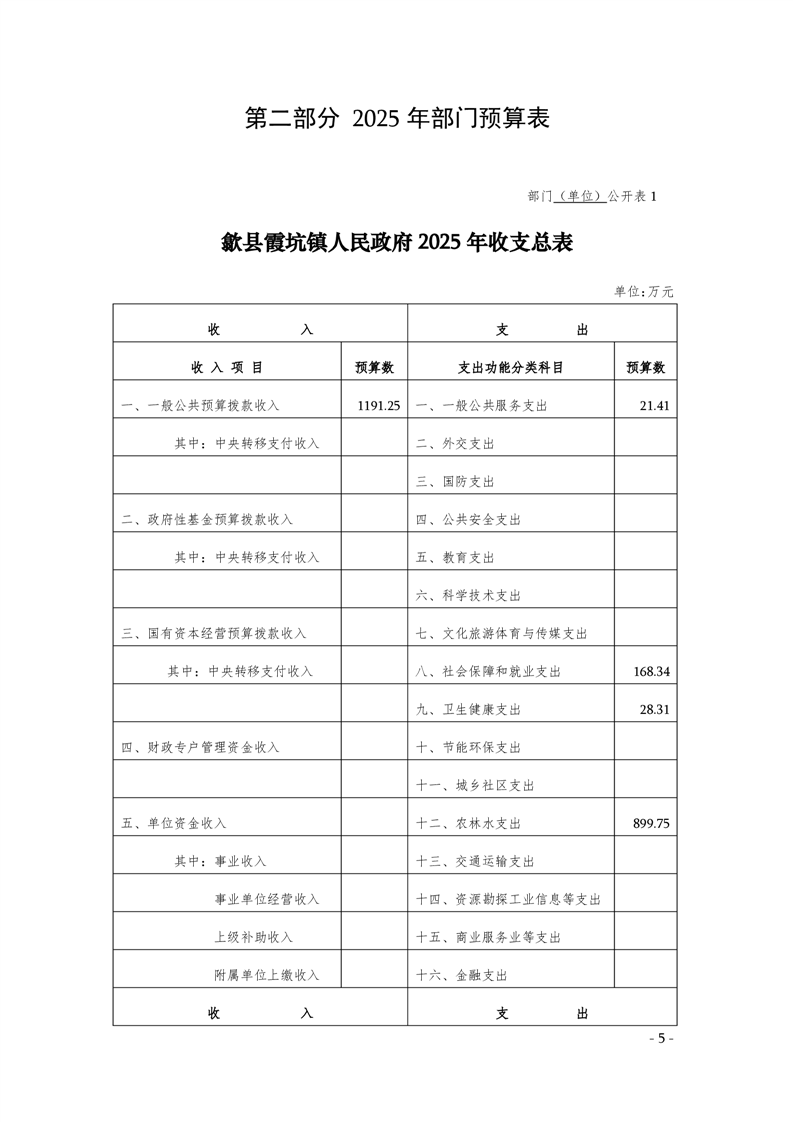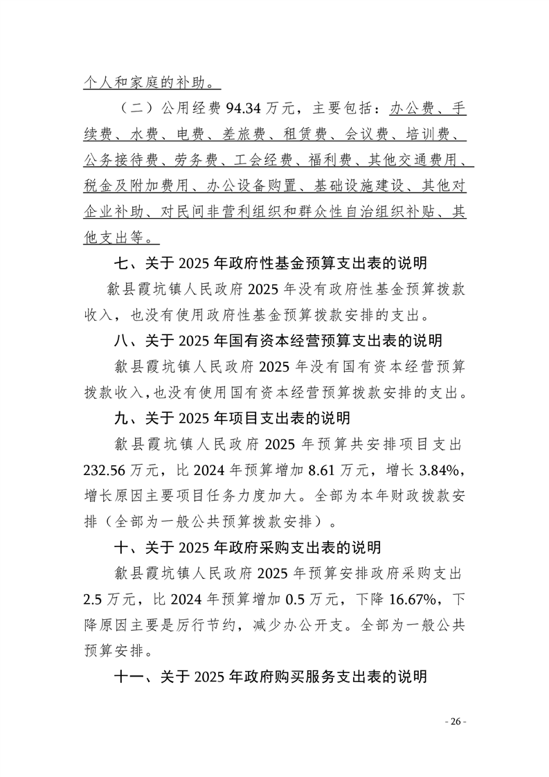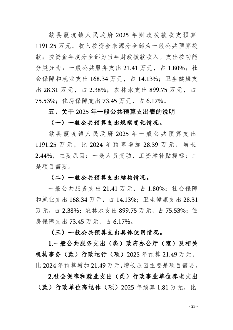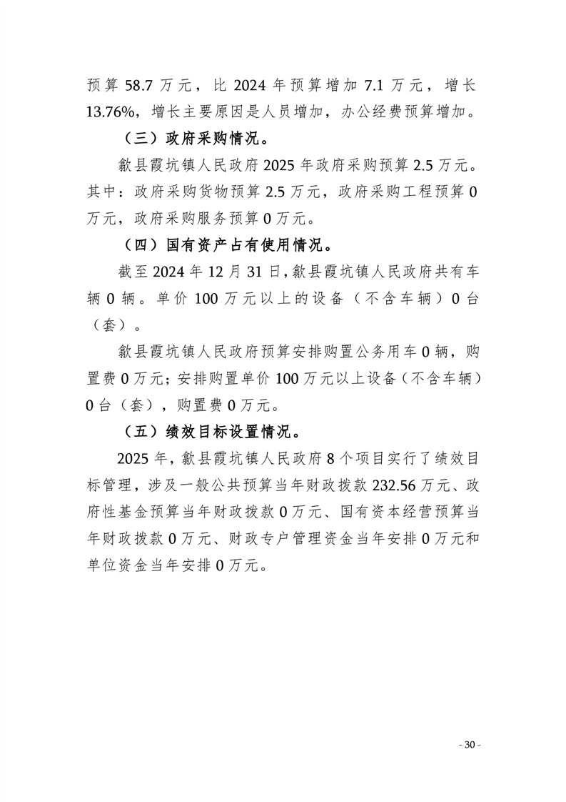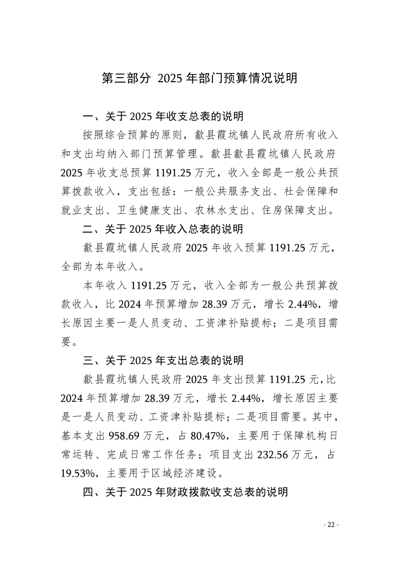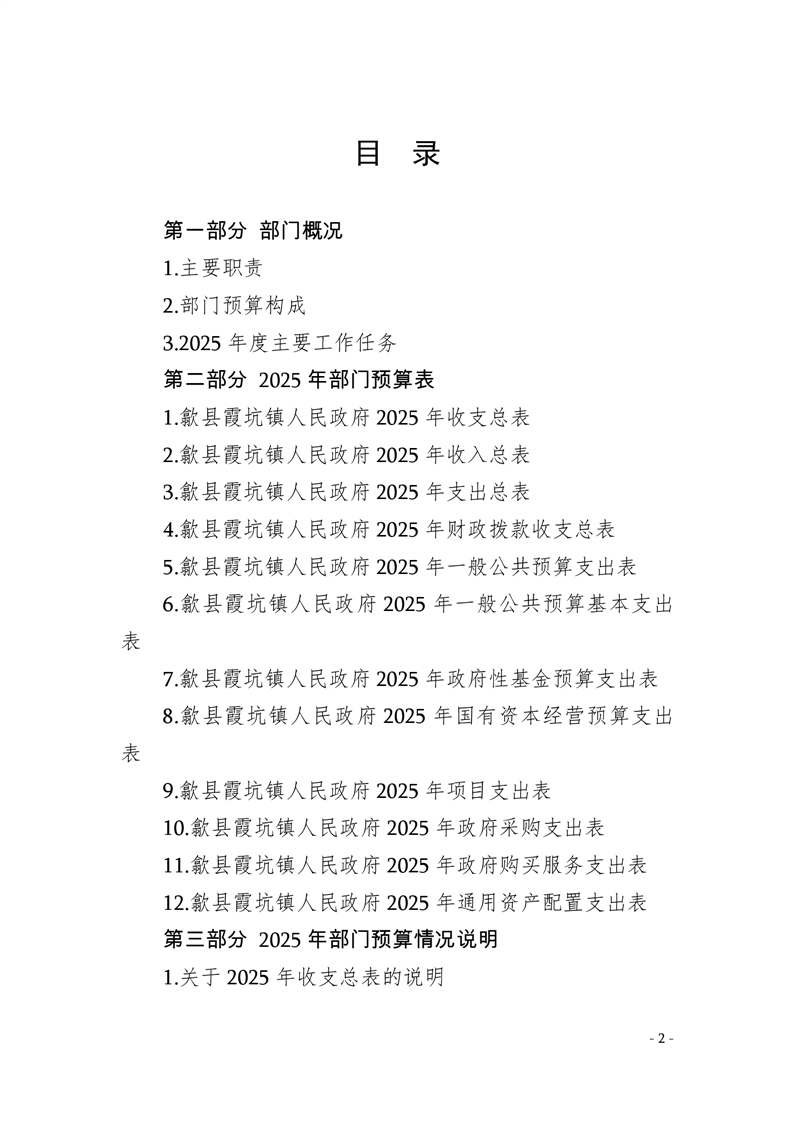 2025年歙县霞坑镇人民政府预算公开
