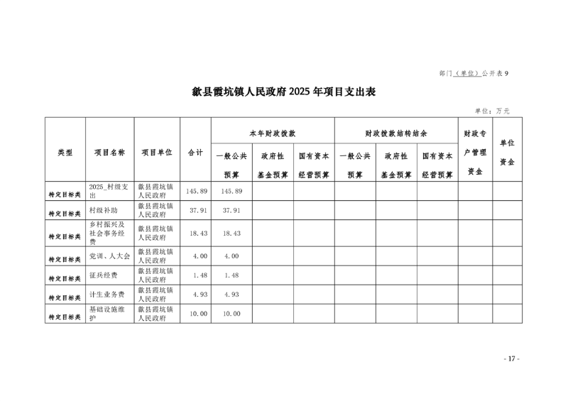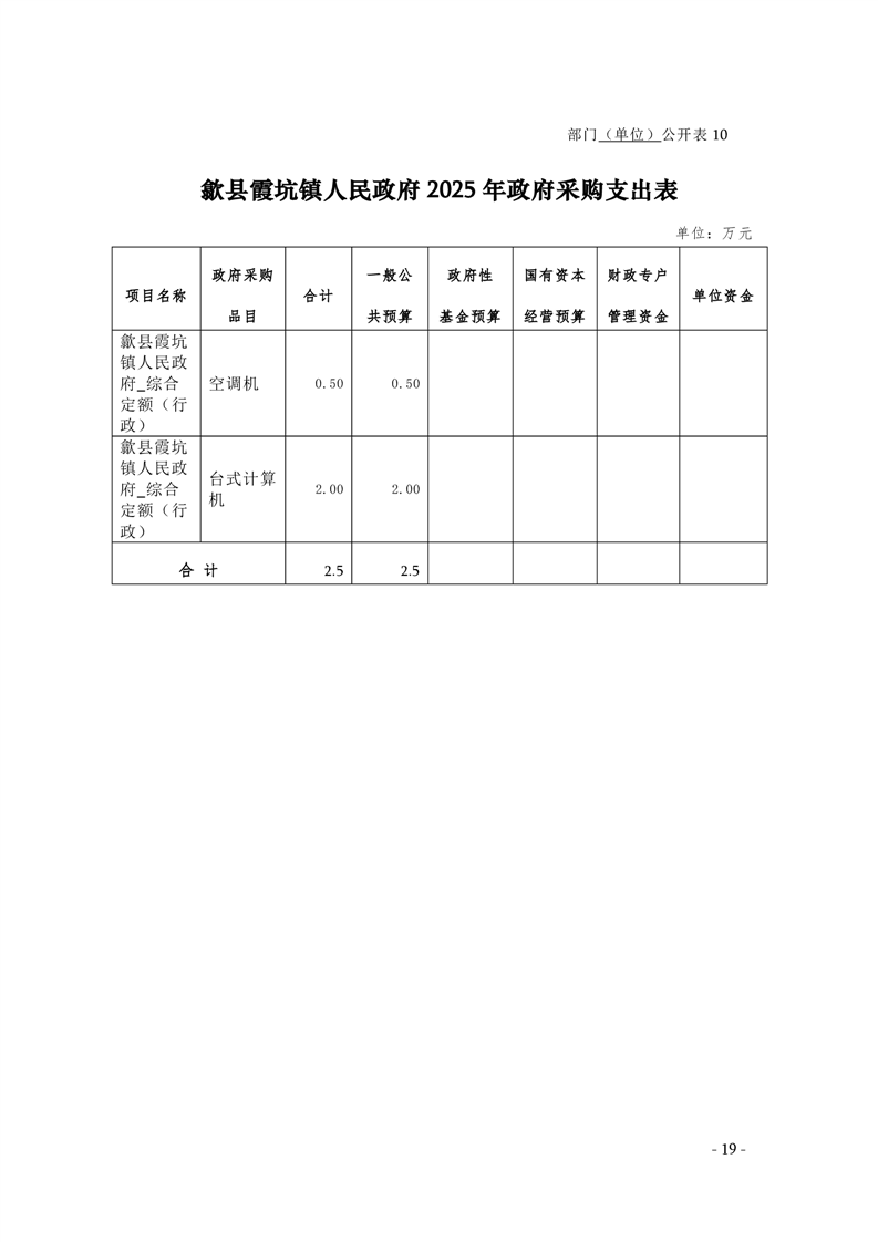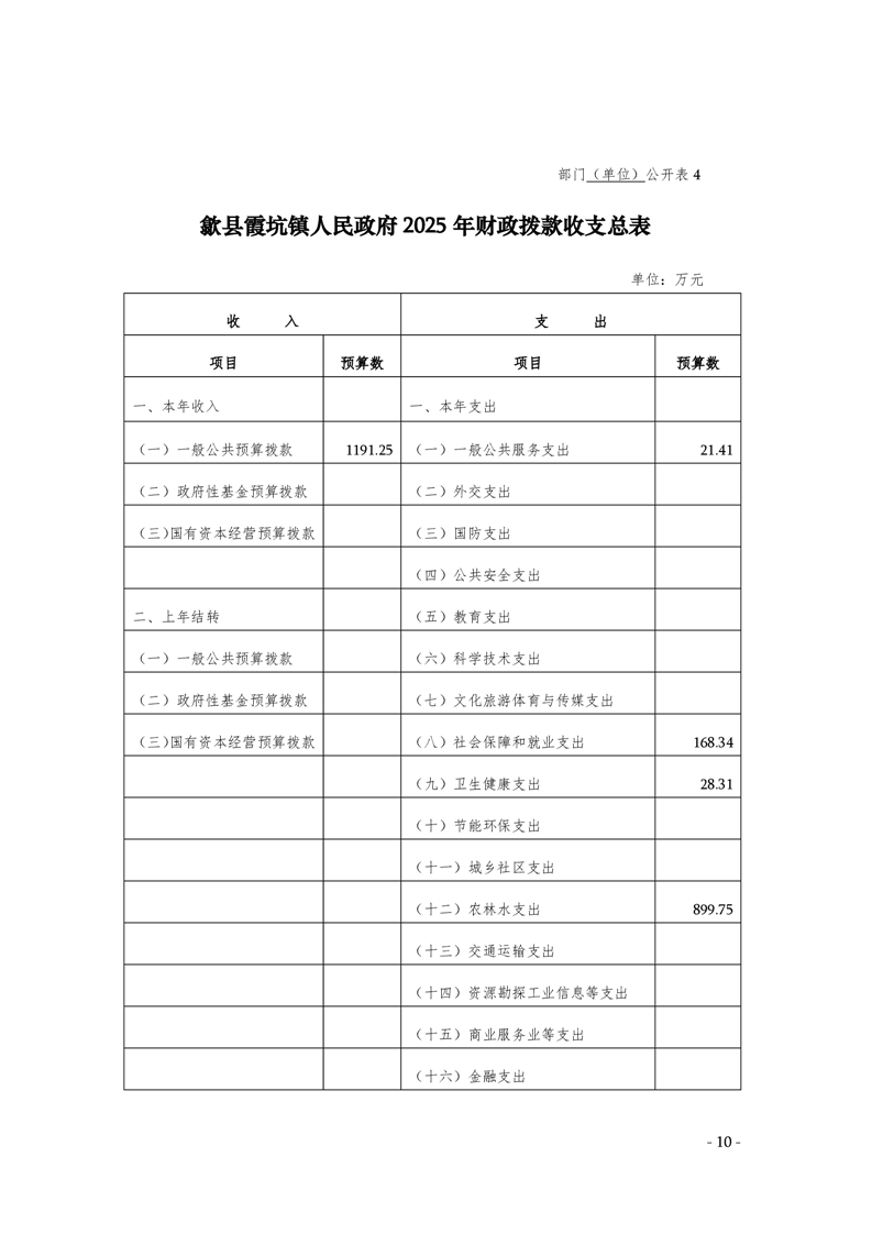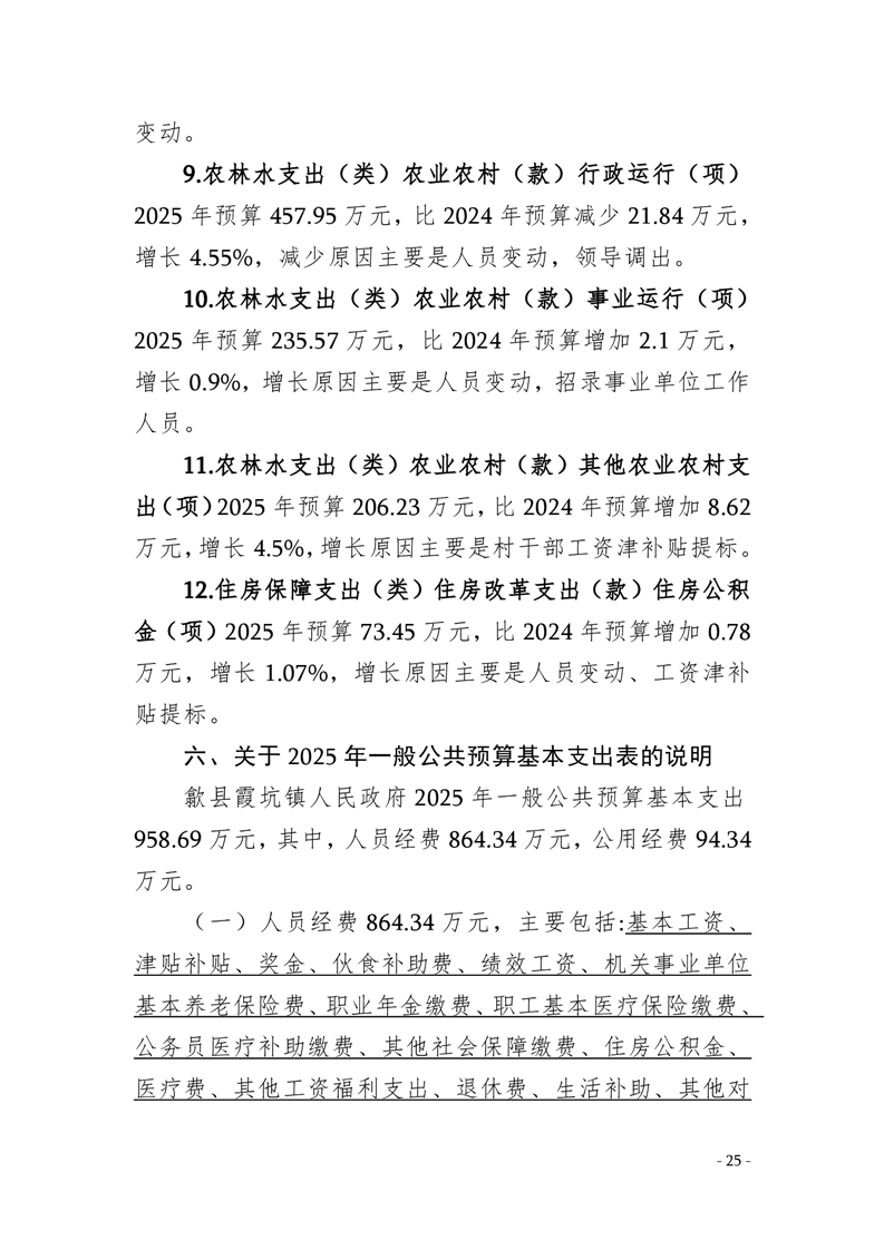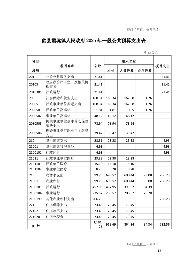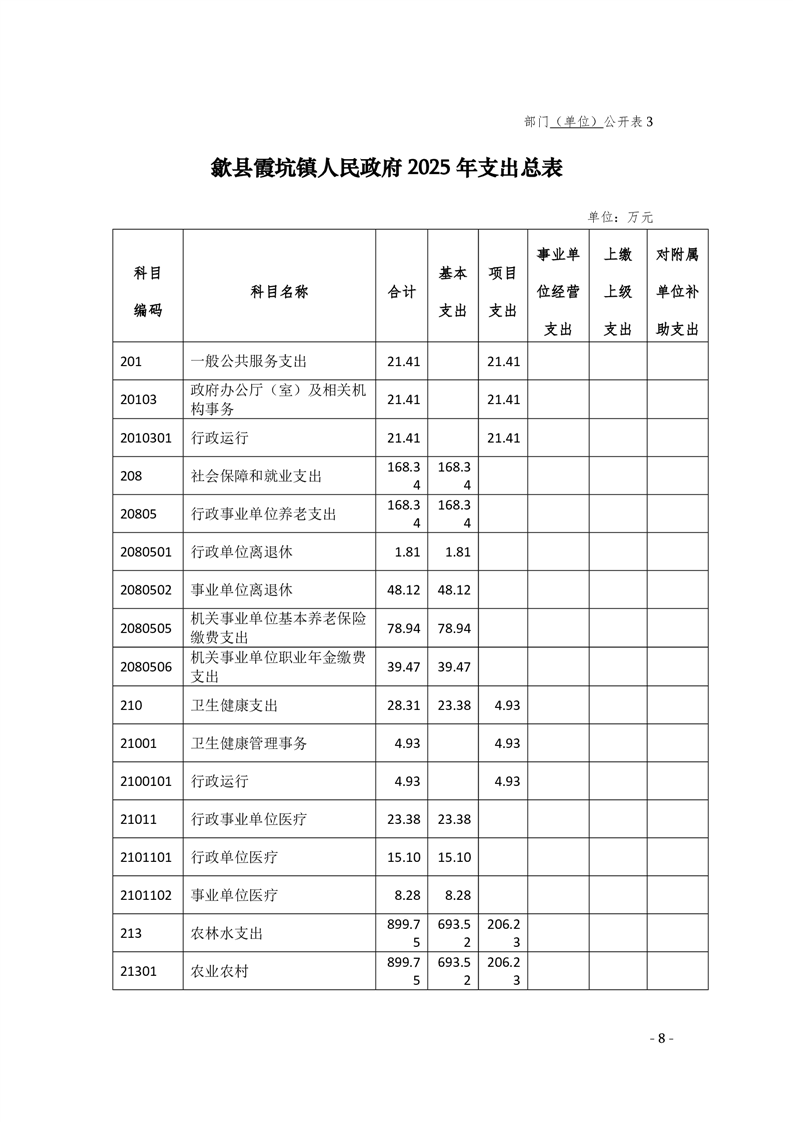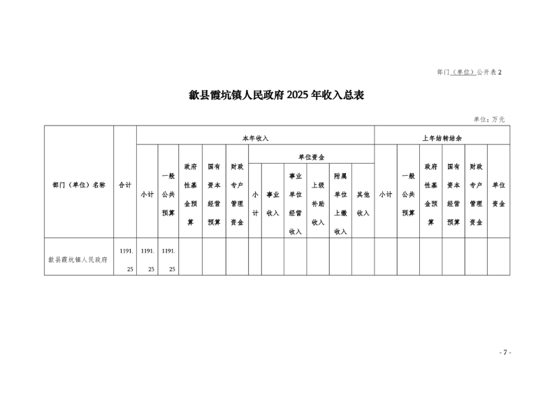 2025年歙县霞坑镇人民政府预算公开