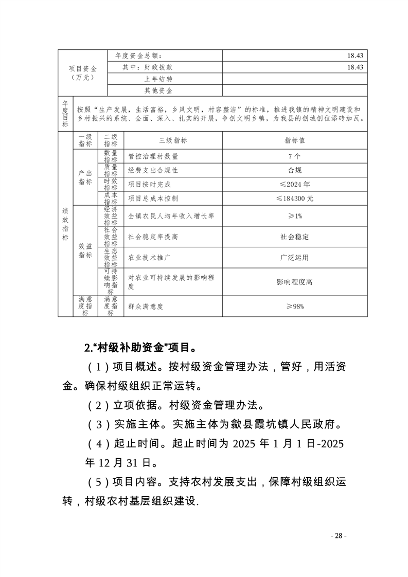 附件一:2025年霞坑镇人民政府项目绩效目标表.rar