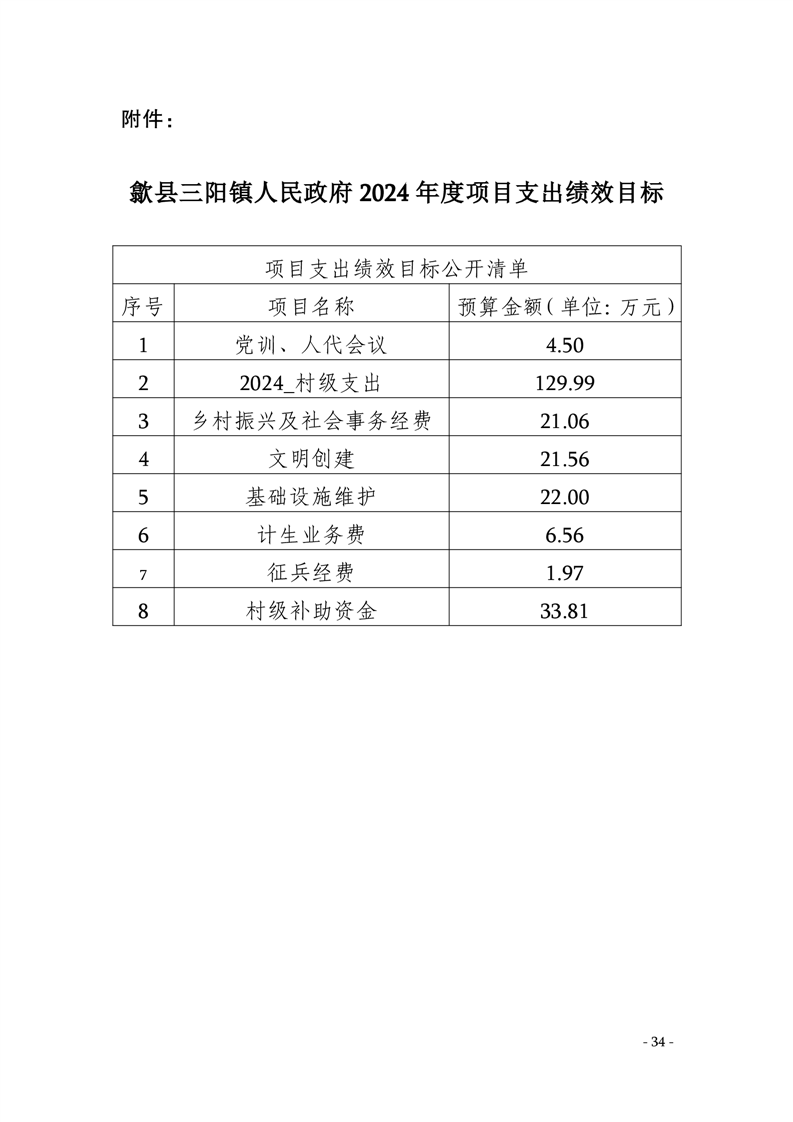 歙县三阳镇人民政府2024年度项目支出绩效目标.pdf