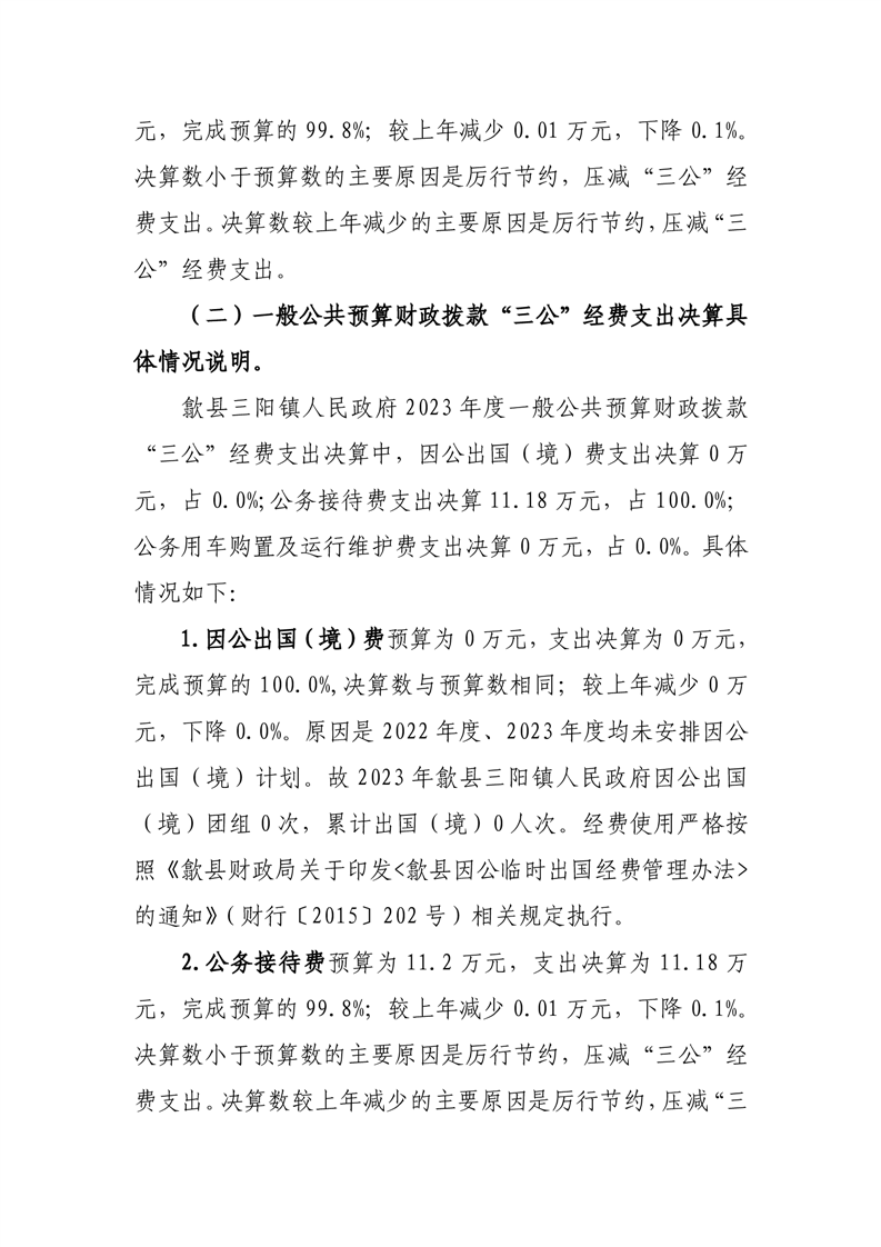 歙县三阳镇人民政府2023年度一般公共预算财政拨款“三公”经费支出决算.pdf