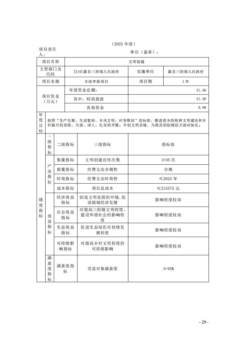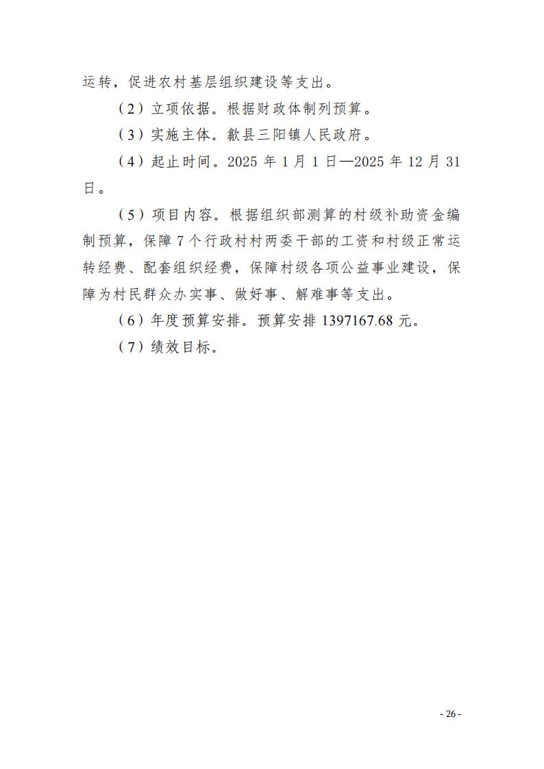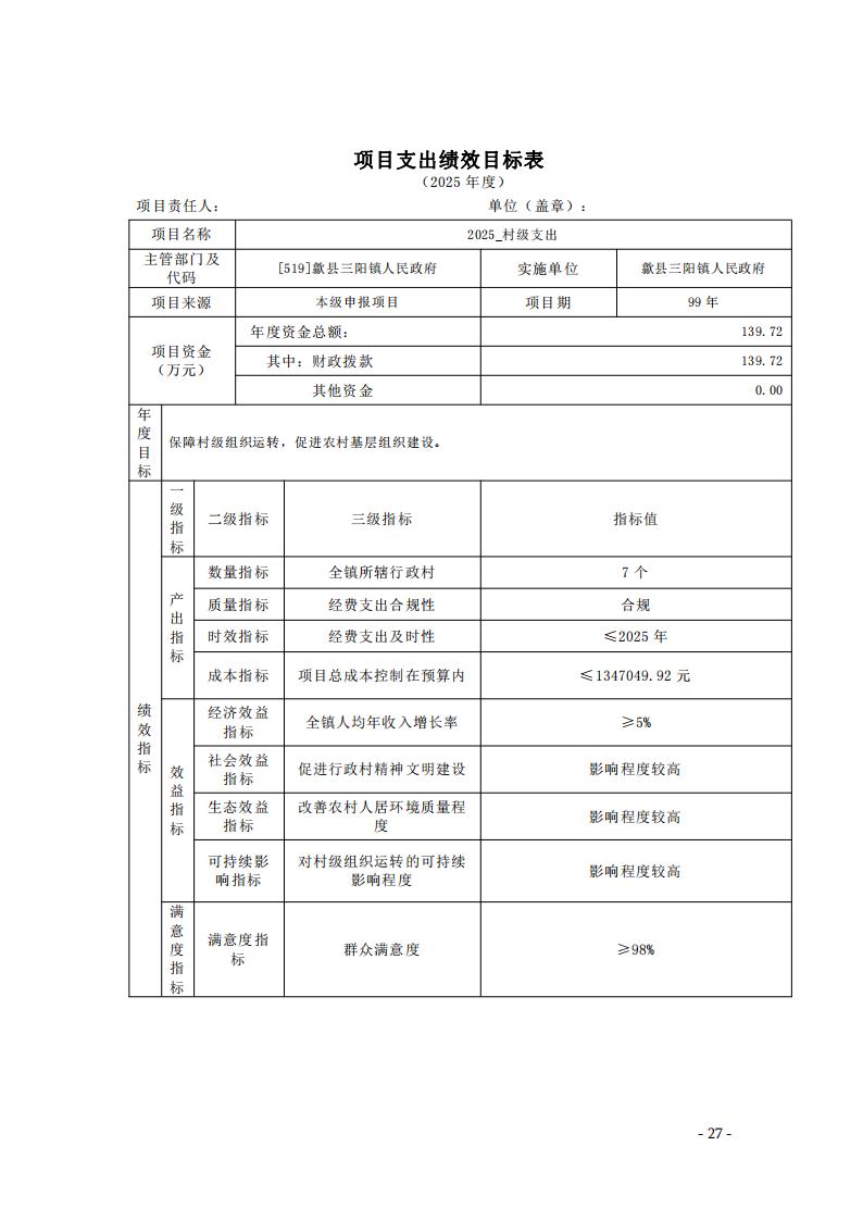 歙县三阳镇人民政府2025年度项目支出绩效目标.pdf