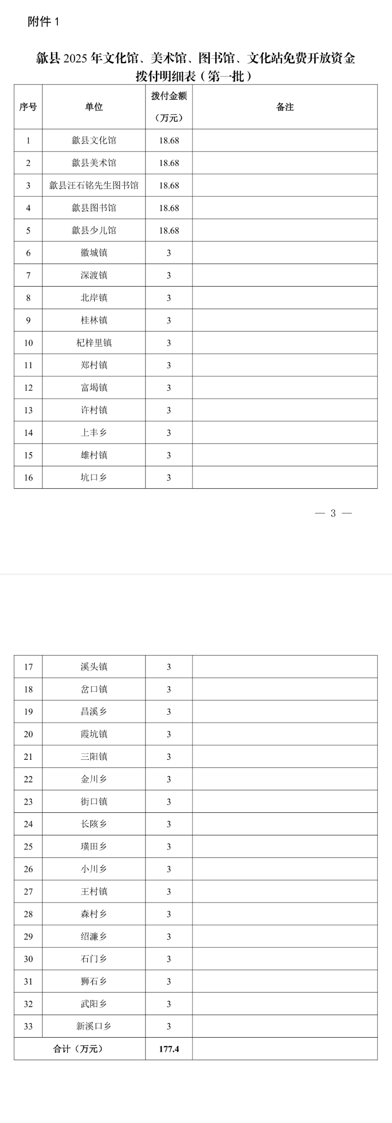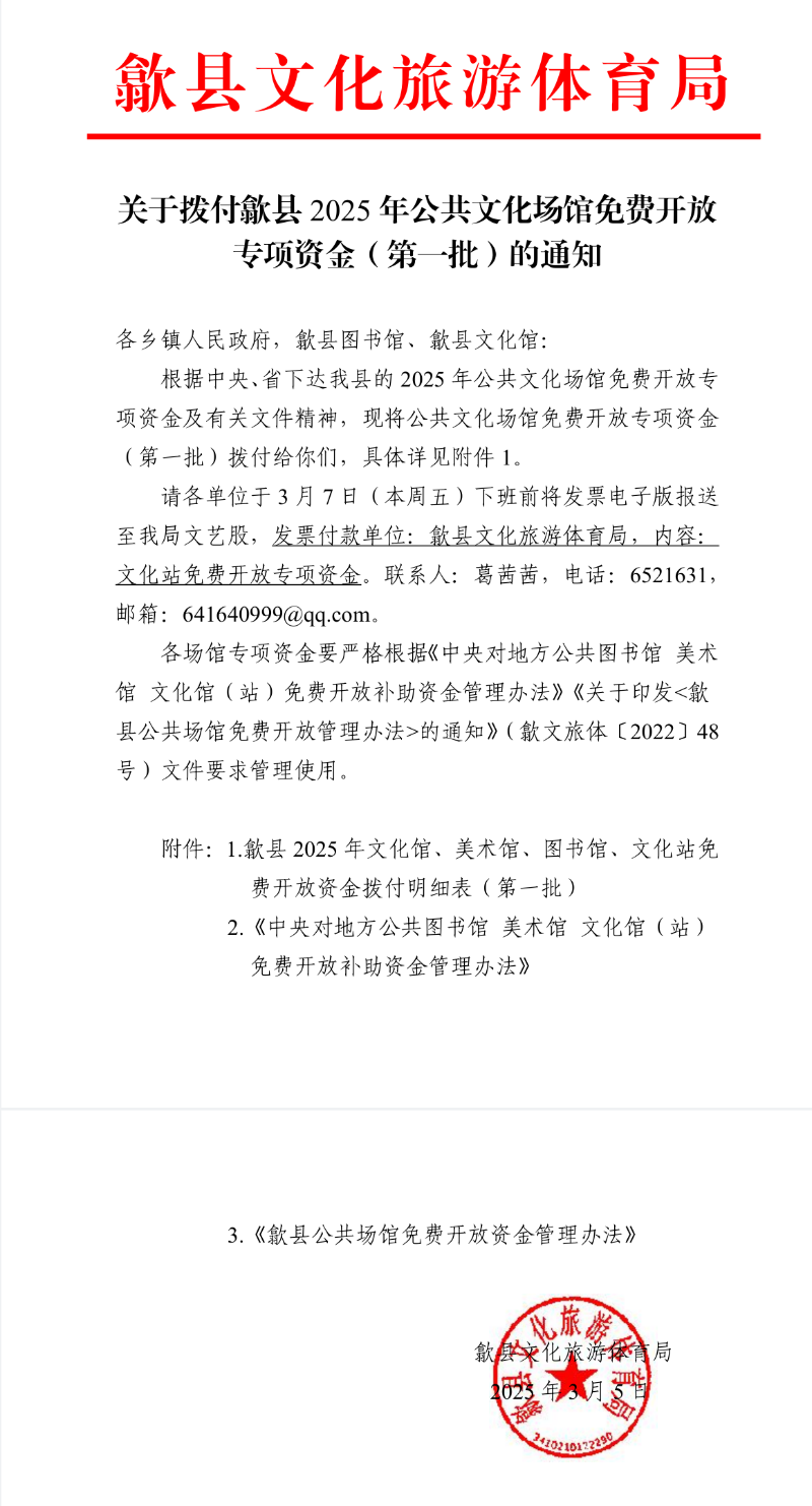 歙县2025年公共文化场馆免费开放专项资金表