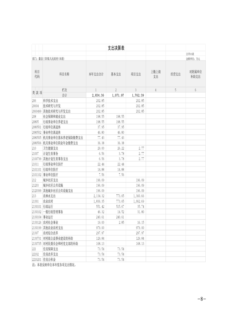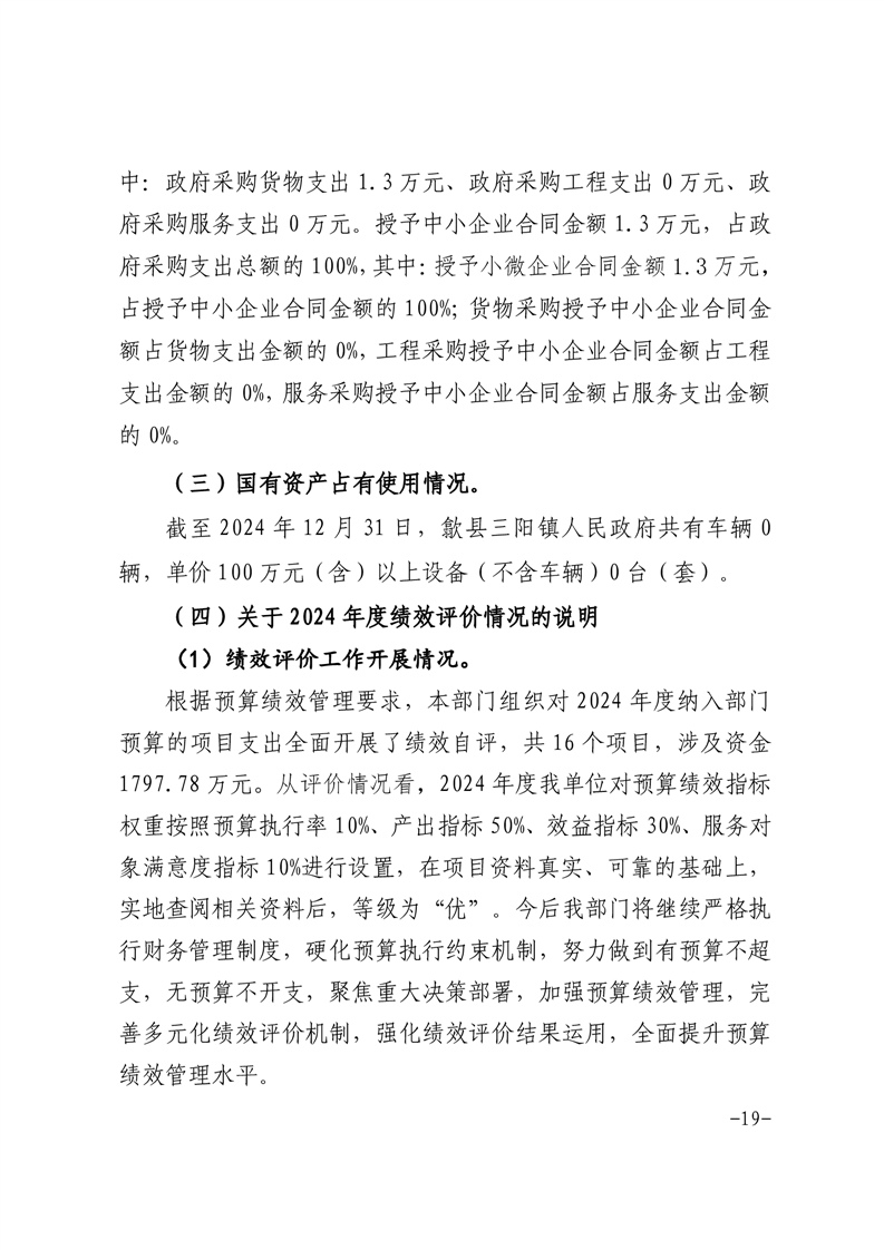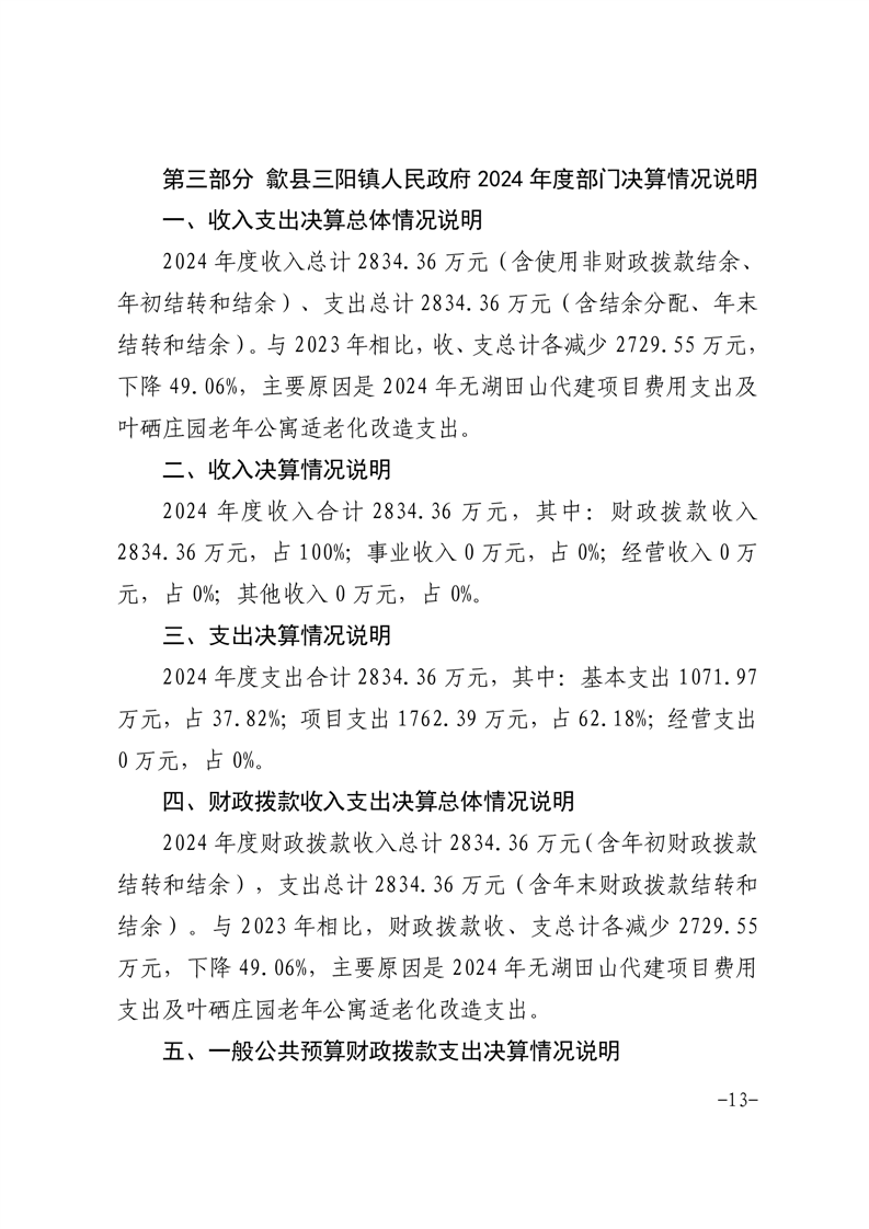 歙县三阳镇政府2024年度部门决算