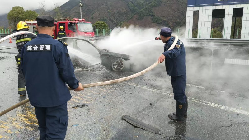 2026年3月30日15时09分,黄山市歙县三阳镇应急消防工作站接到歙县消防救援局转来的警情:位于昱岭关隧道往杭州方向路段有汽车起火,请求前往支援灭火。警情就是命令,三阳镇应急消防工作站立即启动应急响应,迅速调集2辆水罐消防车、10名消防救援人员赶赴现场。