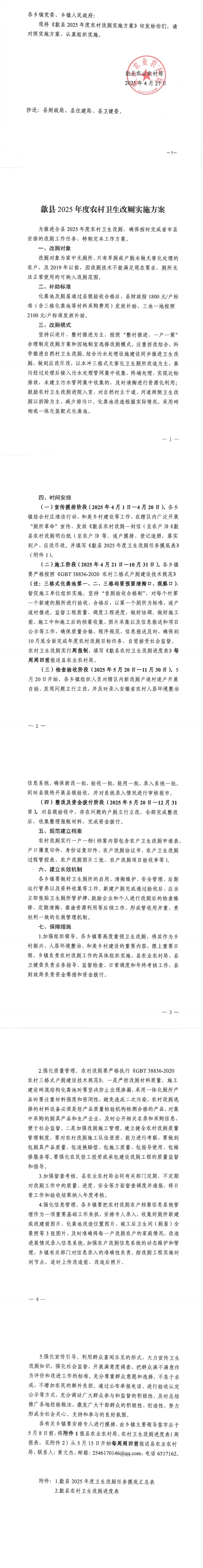 关于印发《歙县2025年度农村改厕实施方案》的通知