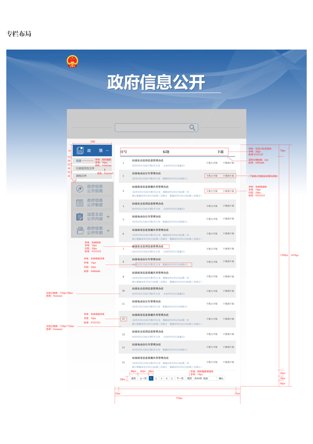 规章网页版式、下载版式及专栏页面设计方案