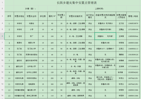 (2)人员转移安置:组织较大规模人员紧急转移避险和安置;启用或设立临时集中安置点(如村委会、学校等);确保安置点基本生活条件(食、宿、水、电、卫生)。