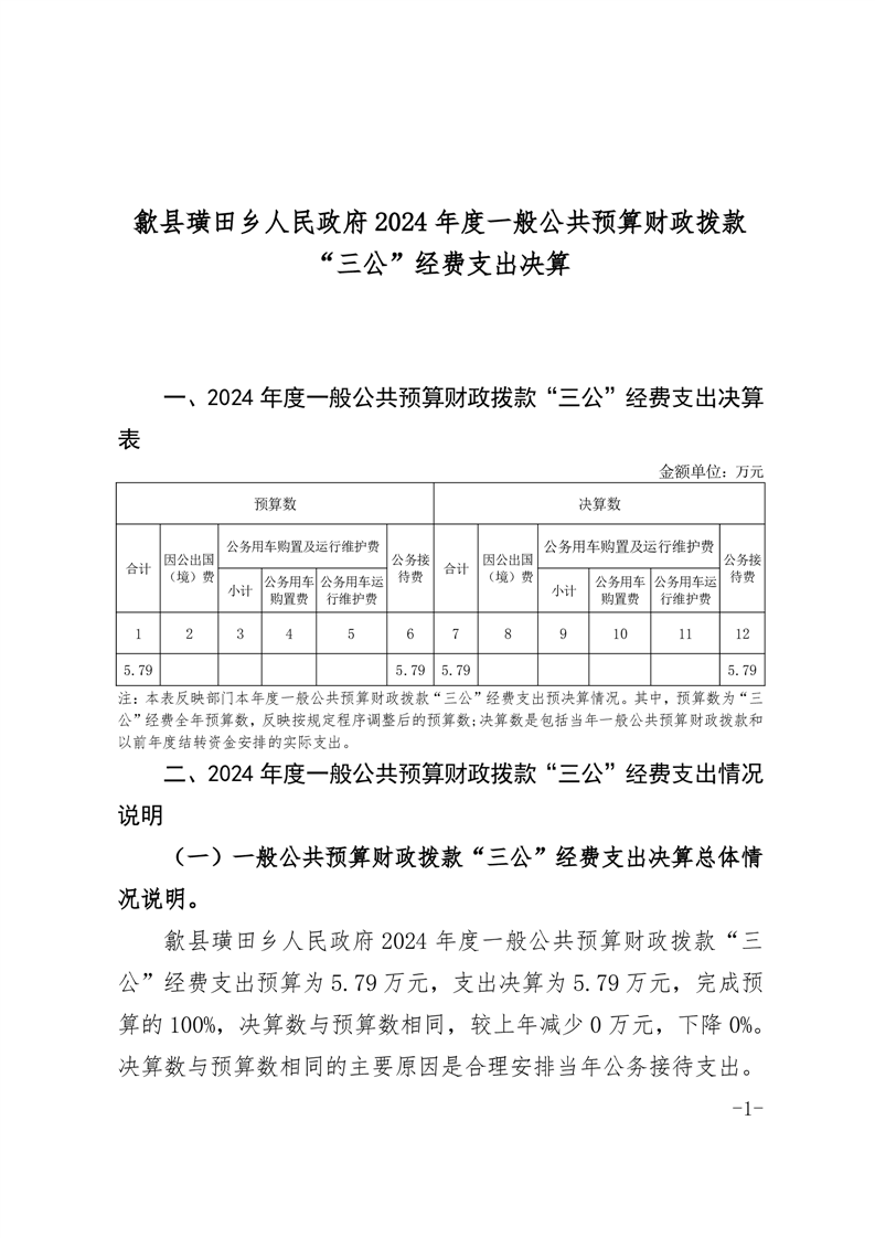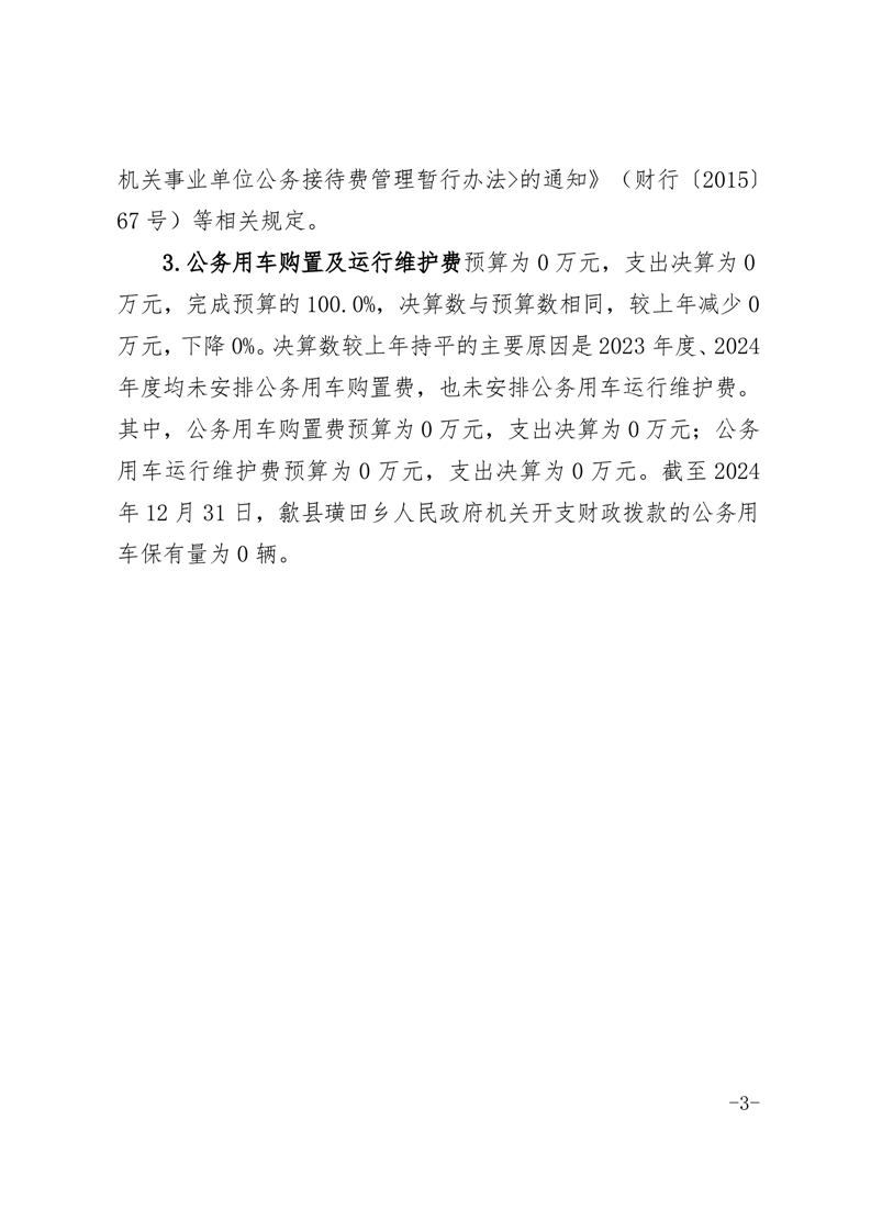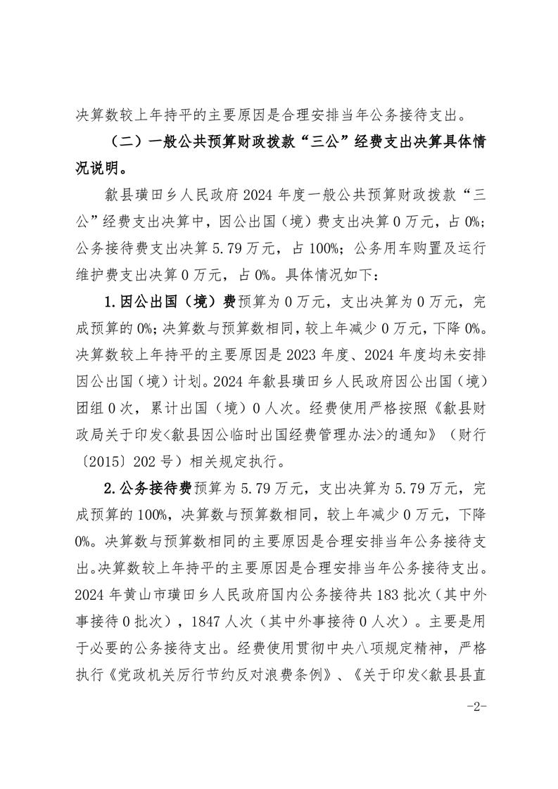 歙县璜田乡人民政府2024年度一般公共预算财政拨款“三公”经费支出决算