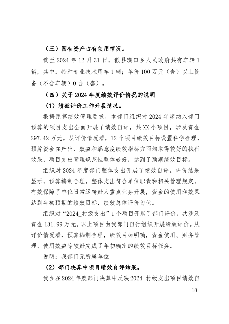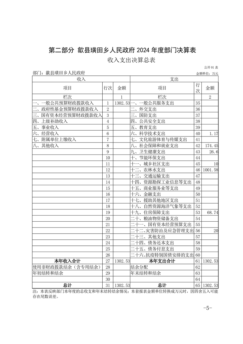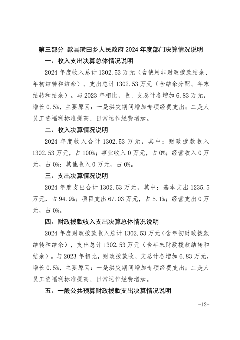 歙县璜田乡人民政府2024年度部门决算
