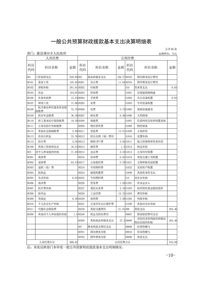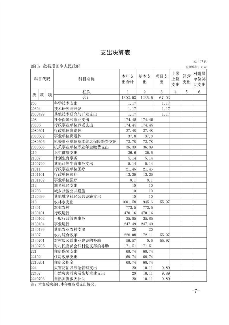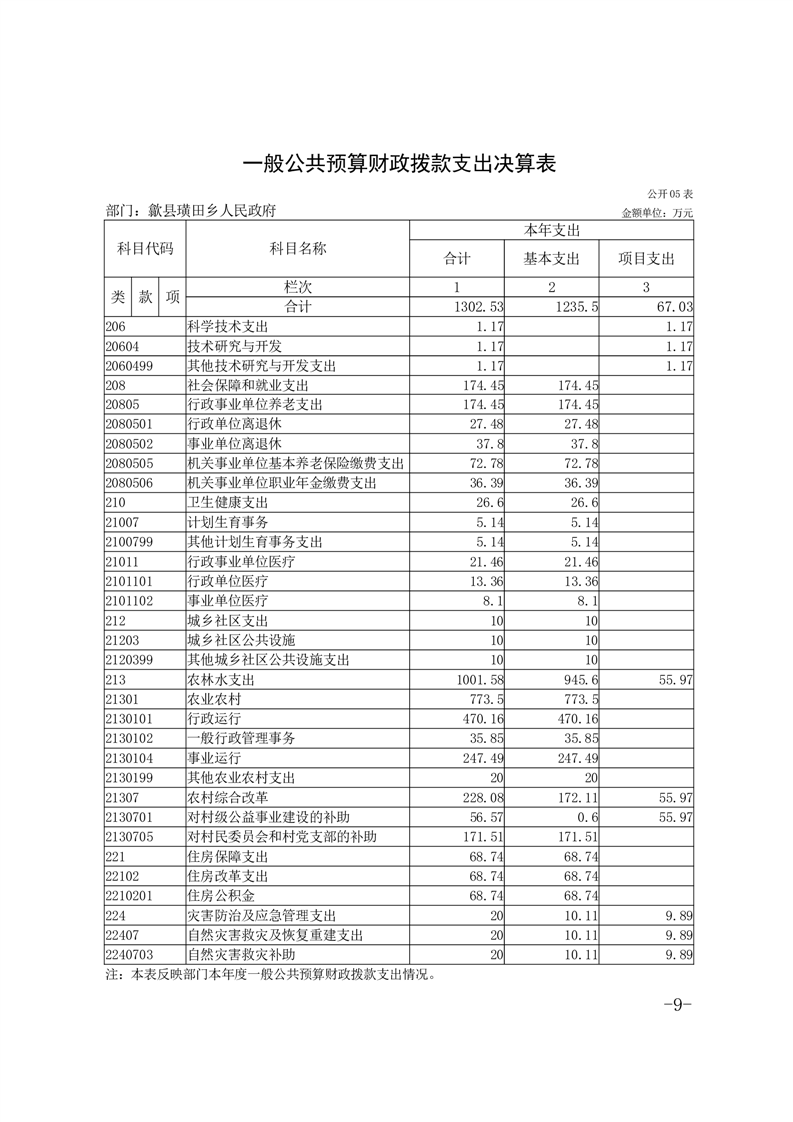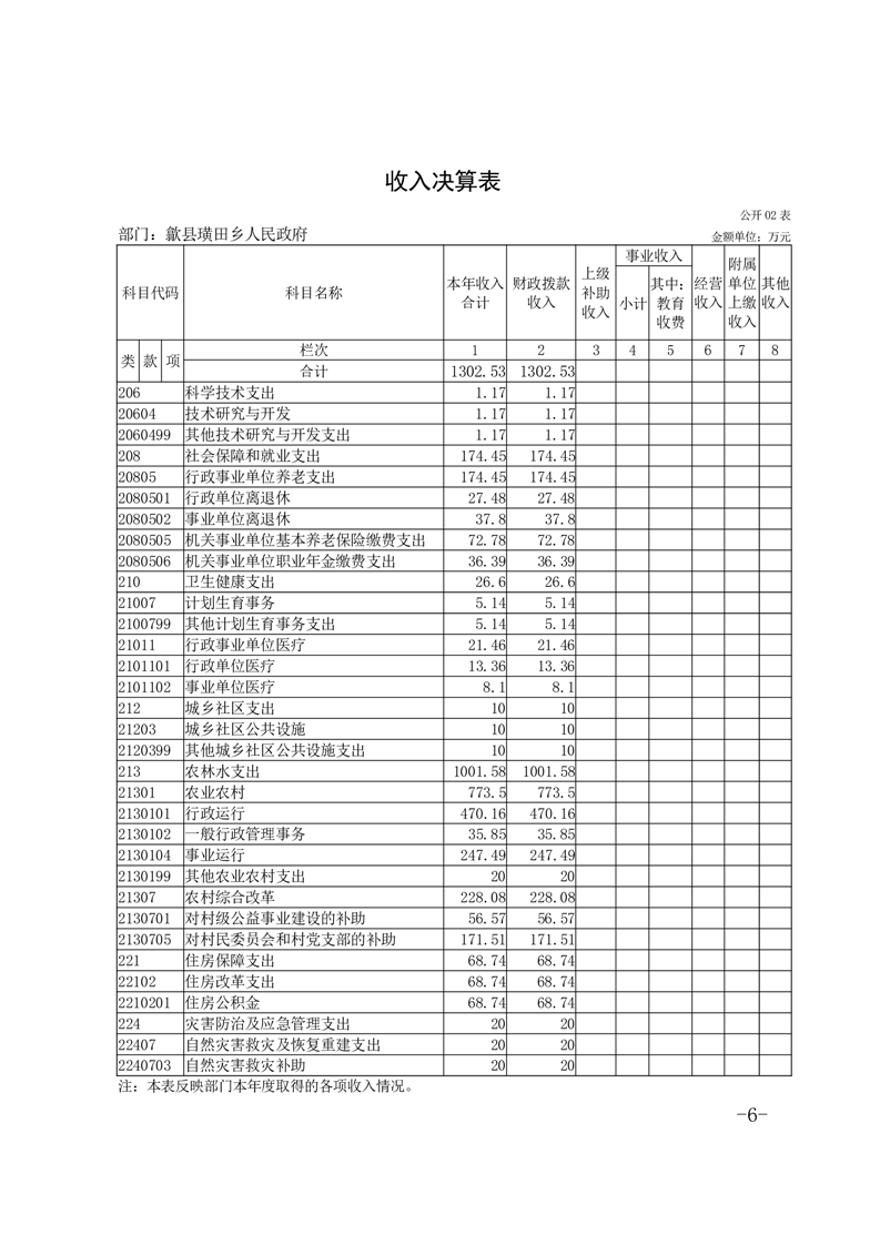 歙县璜田乡人民政府2024年度部门决算