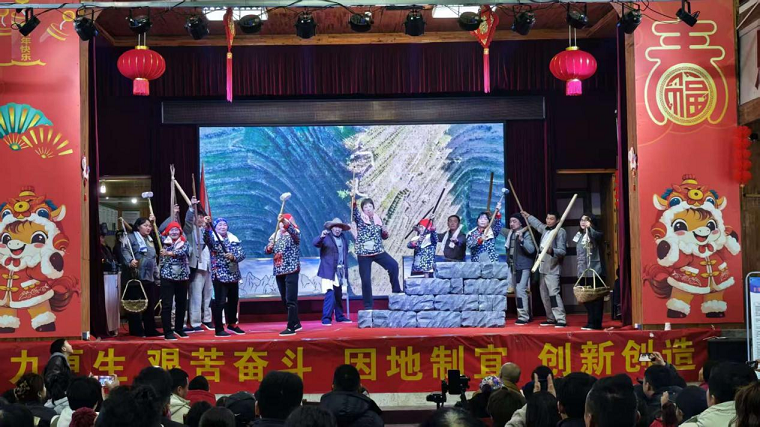 晚会在村民演绎的徽调情景剧《蜈蚣岭奇迹》中拉开序幕,再现了蜈蚣岭垦荒造田的奋斗史。“00后”返乡大学生带来的独唱《初心向党永不忘》,用清澈歌声传递着年轻一代的担当;89岁老人领衔《欢欢喜喜》《欢乐中国年》两支舞蹈,与晚辈同台共舞,跨代际的温情呼应让现场观众动容。