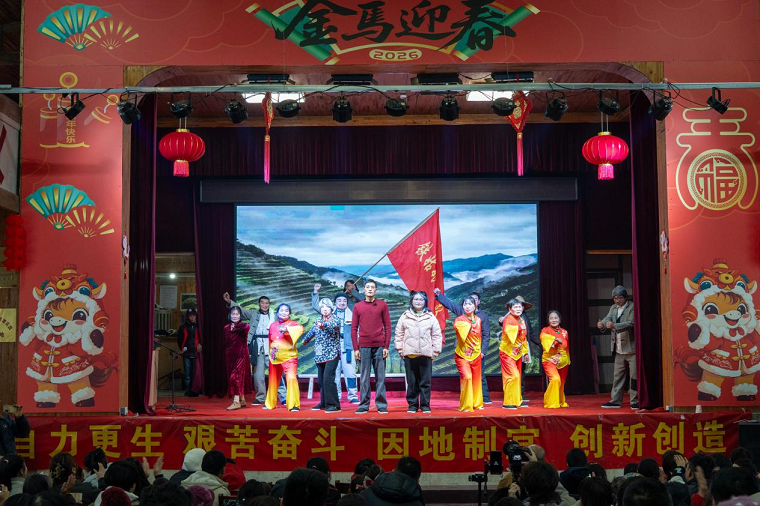 2月18日晚,黄山市歙县璜田乡蜈蚣岭村大队部旧址内暖意融融,第六届以“岭上欢歌 情满蜈蚣岭”为主题的“村晚”正式启幕。这场由村民全程自编自导自演的“家门口盛宴”,以老中青三代同台的动人图景,成为马年新春里最暖的传承注脚。
