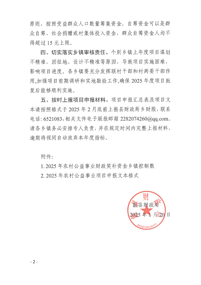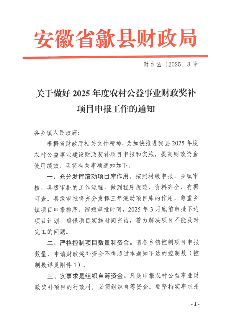 关于做好2025年度农村公益事业财政奖补项目申报工作的通知