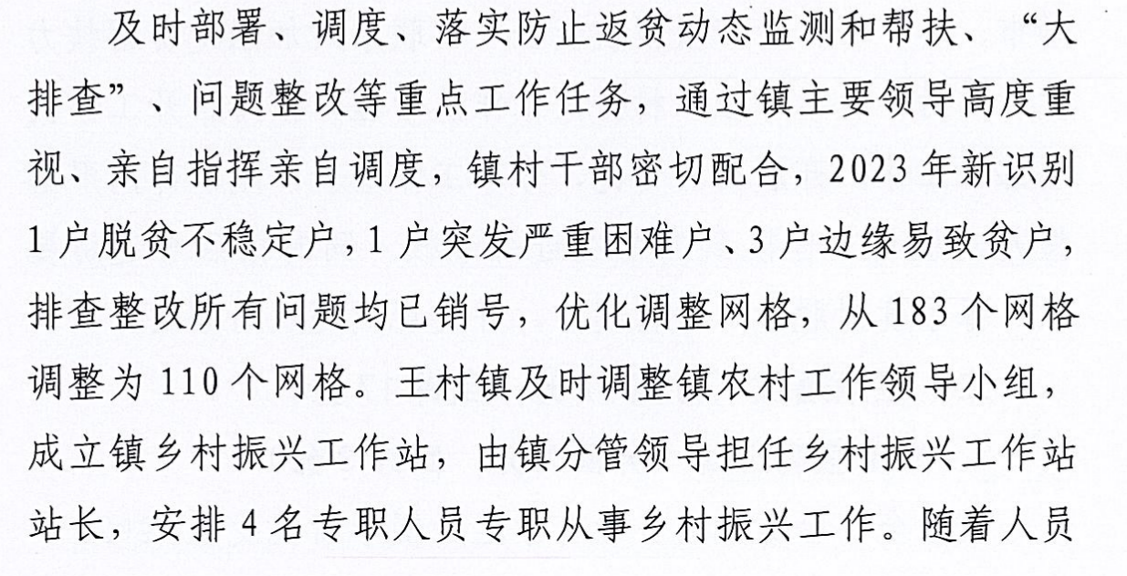 【乡村振兴开展情况】王村镇2023年巩固拓展脱贫攻坚成果同乡村振兴有效衔接考核自评报告
