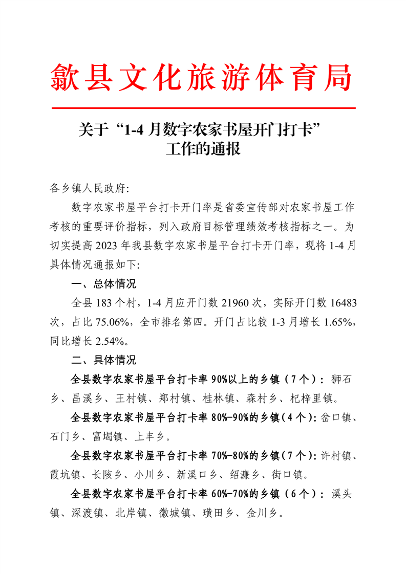 关于“1-4月数字农家书屋开门打卡”工作的通报