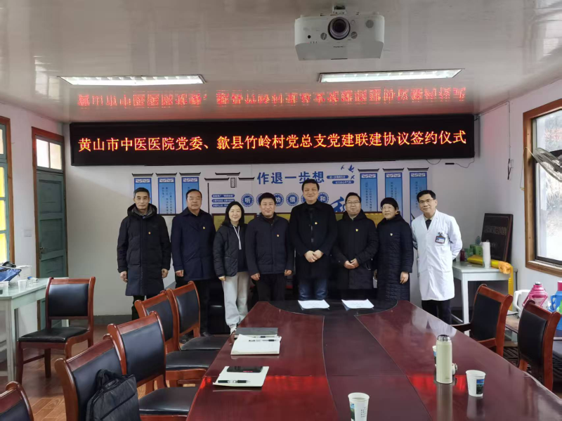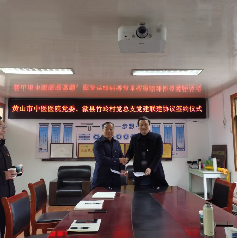 近年来,竹岭村深化党建引领,大力发展乡村旅居工作,积极对外招才引智,汇聚社会力量,共谋乡村发展。黄山市中医医院(新安医学传承创新中心)是一所集急救、医疗、教学、科研、预防、保健、康复为一体的以新安医学中医为特色的综合性国家三级中医医院,拥有的丰富的中医诊疗资源和专业医疗团队与竹岭村推广健康旅游、文化体验及高端康养服务的规划目标形成发展合力。双方经友好协商,签订党建联建协议,旨在通过党建引领,带动各方资源力量,打造组织领导有力、联农带农紧密的乡村产业发展新模式,为彰显徽风皖韵的宜居宜业和美乡村黄山样板探索发展新路径。
