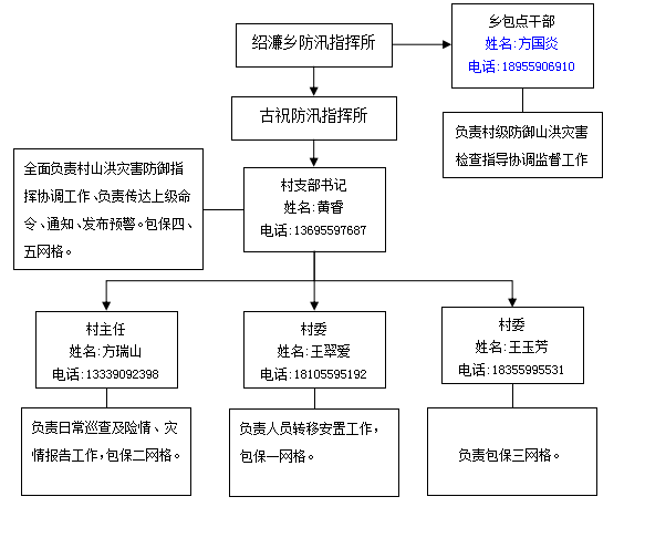 绍濂乡成立防汛指挥所,承担山洪灾害防御组织指挥工作(详见下图)。