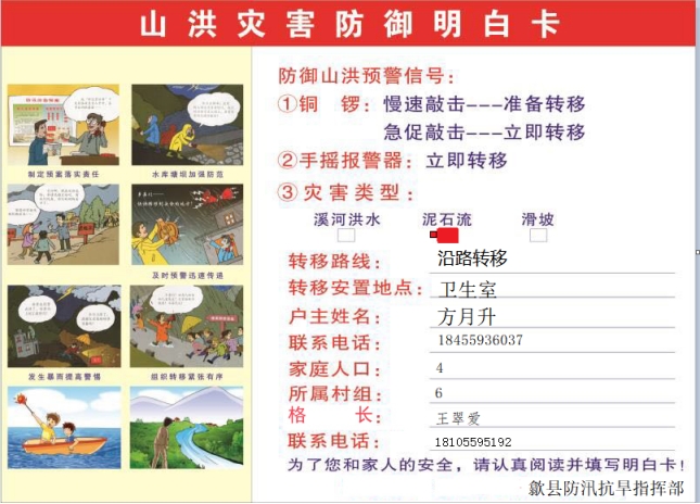 (1)收到县、乡防汛指挥机构预警信息后,按照村书记→村包保责任人→格长→居民流程传递信息。