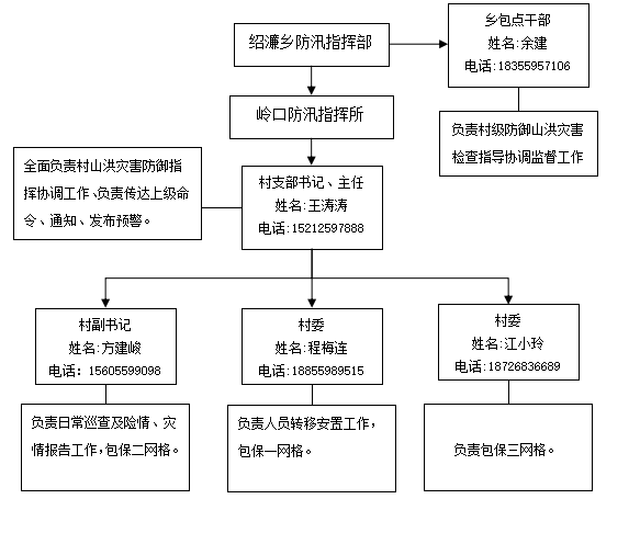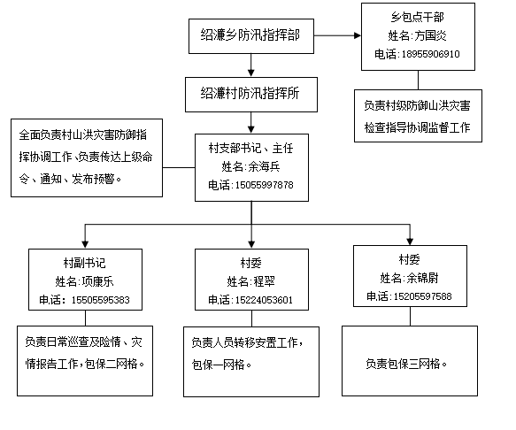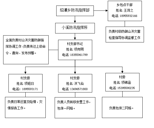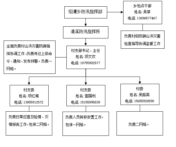 1.绍濂村成立防汛指挥部,承担山洪灾害防御组织指挥工作(详见下图)。