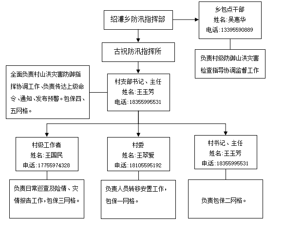 6.古祝村成立防汛指挥部,承担山洪灾害防御组织指挥工作(详见下图)。
