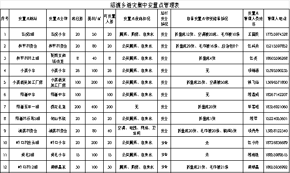 绍濂乡各村集中安置点情况