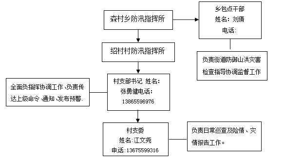 (1)收到县、乡防汛指挥机构预警信息后,按照村书记→村包保责任人→组长→村民流程传递信息。