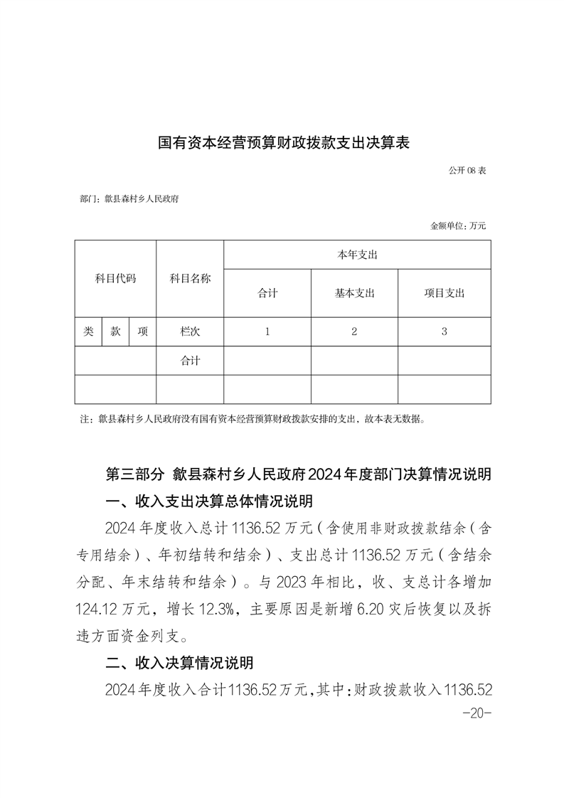 歙县森村乡人民政府2024年度部门决算
