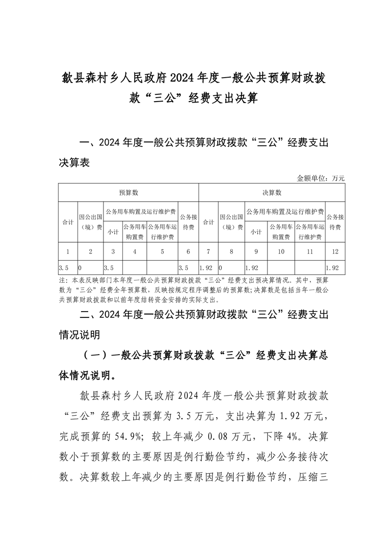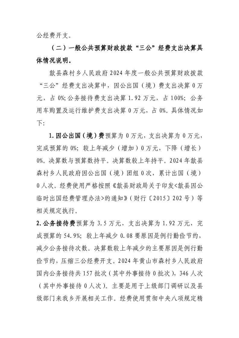 歙县森村乡人民政府2024年度一般公共预算财政拨款“三公”经费支出决算