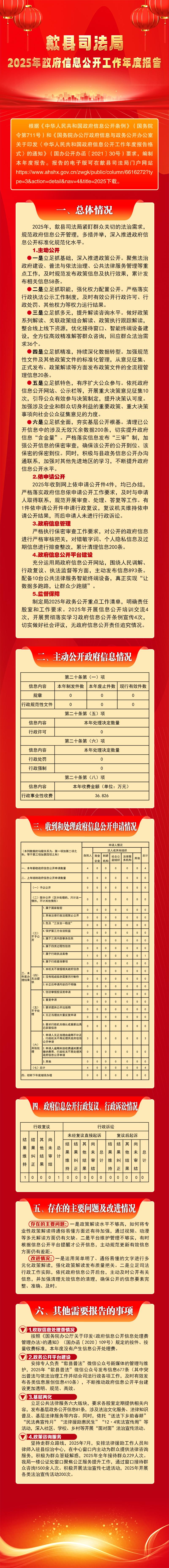 根据《中华人民共和国政府信息公开条例》(国务院令第711号)和《国务院办公厅政府信息与政务公开办公室关于印发〈中华人民共和国政府信息公开工作年度报告格式〉的通知》(国办公开办函〔2021〕30号)要求,编制本年度报告。报告的电子版可在歙县司法局门户网站https://www.ahshx.gov.cn/zwgk/public/column/6616272?type=3&action=detail&nav=4&title=2025下载。