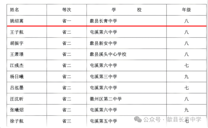 歙县长青中学一学生在2025CSPJ2/S2竞赛中喜获省一等奖