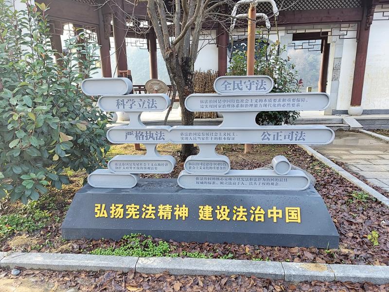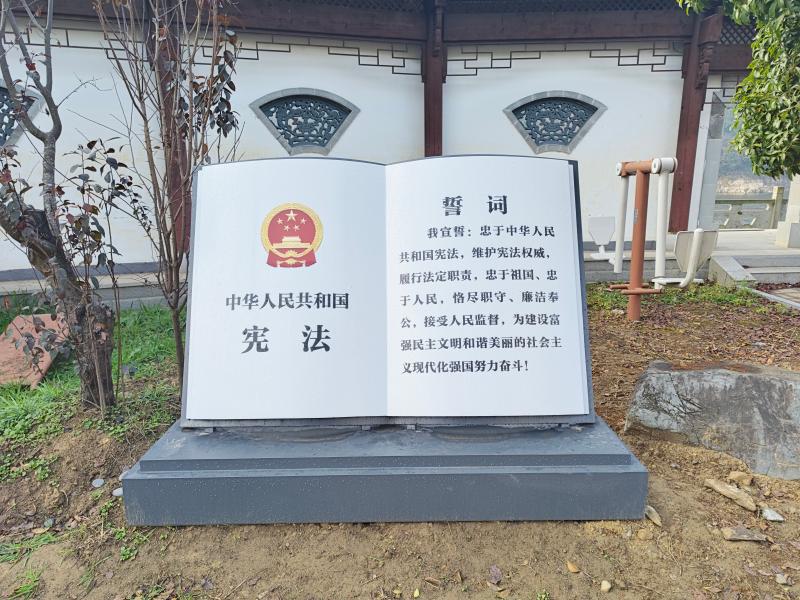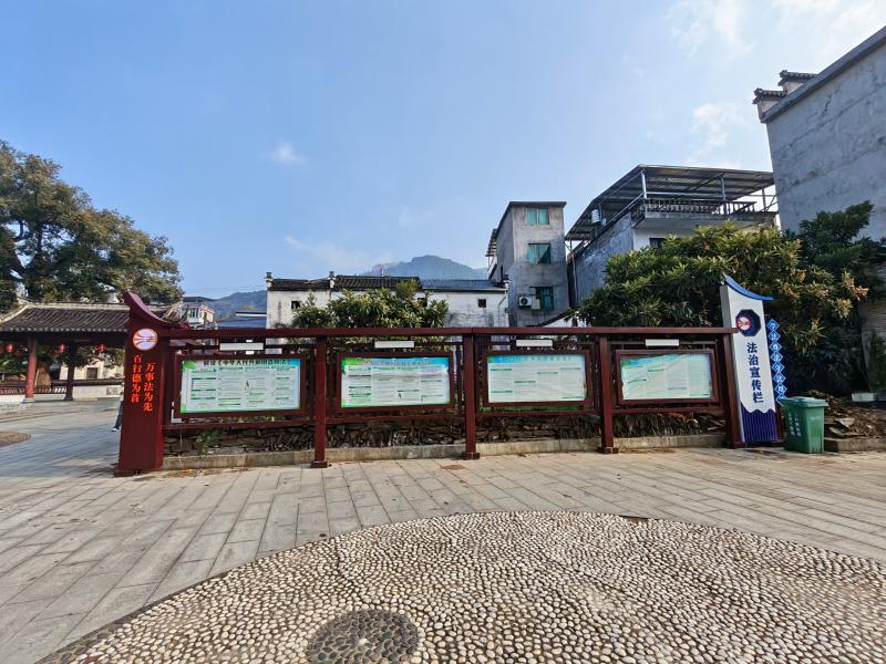 金龙潭村作为“皖浙一号线”重要路段,上下游连接着两个重要乡镇。歙县坑口乡立足“可用、有用、管用”的原则,让群众在阵地中获得法治体验、增强法治认知、提升法治素养,经过积极争取,在金龙潭村金滩广场建设了一处法治文化阵地,包含法治标识、法治宣传栏等设施。该广场不仅融入了宪法、民法典宣传等法治要素,还结合乡村振兴工作,突出基层普法依法治理,展现农村生活新面貌。