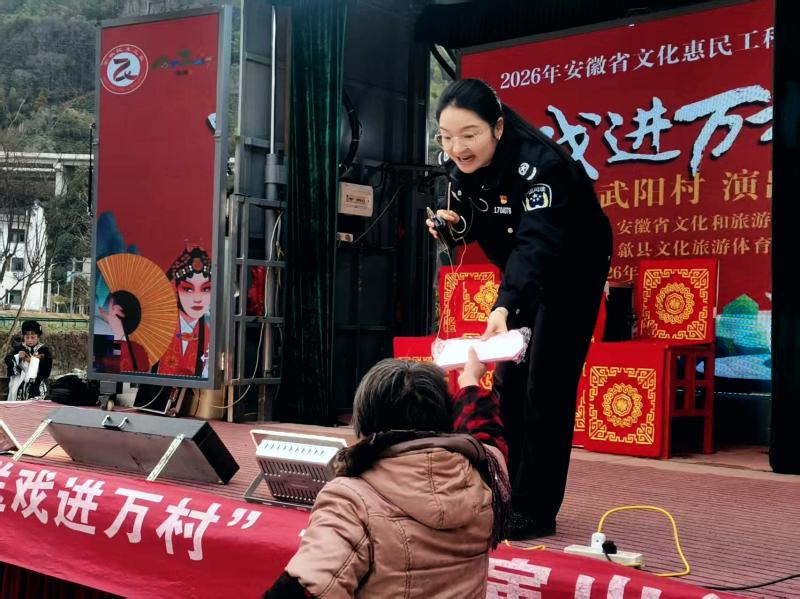1月12日下午,歙县武阳乡武阳村文化广场锣鼓喧天、人头攒动,一场“文化搭台、法治唱戏”的送戏下乡活动在此热闹上演。武阳乡司法所借助文艺演出的人气热潮,以“宣讲+竞答”的创新形式开展普法宣传,将宪法、民法典等法律知识融入欢声笑语,让村民在享受文化盛宴的同时,感受法治温度。