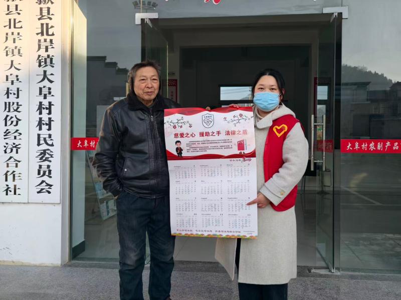 在北岸镇大阜村便民服务中心前,工作人员将印有“慈爱之心、援助之手、法律之盾”的挂历送到村民手中,既实用又普法,一位手捧挂历的老伯笑容满面,连连称好。而在村内一家副食品店前,志愿者正耐心地向一位老奶奶讲解法律知识,并递上印有“12348”公共法律服务热线的宣传袋,热情细致的讲解让老人倍感温暖。在另一处宣传点,司法所设置了咨询台,志愿者向往来村民,特别是老年人群体,发放法律援助指南、防范诈骗等法治宣传资料。活动聚焦婚姻家庭、老年人权益保障、农民工工资支付等与群众切身利益相关的法律问题,提供面对面的咨询解答,引导群众学会运用法律武器维护自身合法权益。