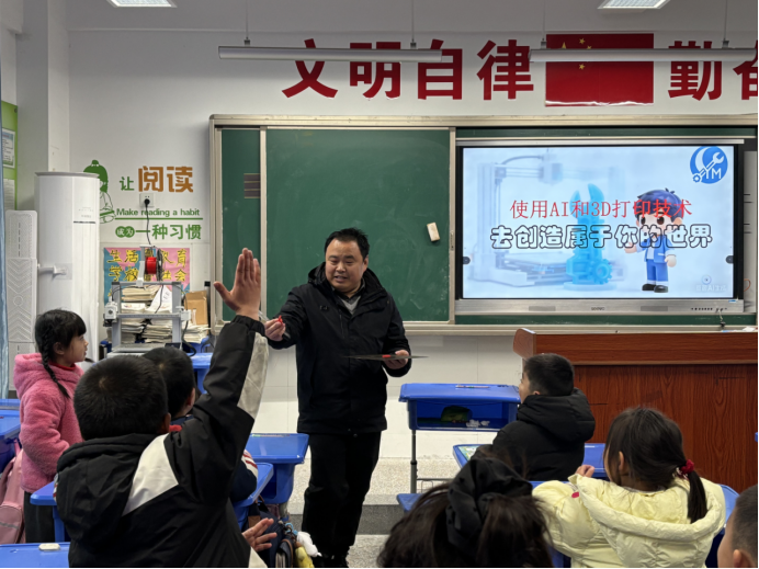 为丰富孩子们的校园生活,拓宽科技视野,进一步深化“导-师-制+”家校社共育实效,近日,歙县行知小学103班特邀家长志愿者兼社会导师——歙县二中物理高级教师张兵走进课堂,开展了一堂生动有趣、充满创意的3D打印课。孩子们怀着满心好奇与热切期待,与导师并肩同行,一同开启了一场兼具知识性与趣味性的科技探索之旅。
