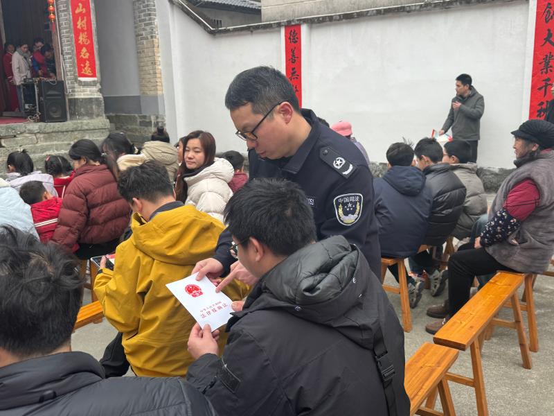 活动现场,司法所工作人员向前来观看演出的村民发放《中华人民共和国法律援助法》《安徽省法律援助条例》《保障农民工工资支付条例》及法律援助服务手册等宣传资料200余份,并结合农村常见的农民工讨薪、赡养继承、工伤及交通事故等问题,用“乡音土话”解读法律援助的申请条件、流程和受理事项范围,让群众明白“什么情况能援助”“遇到问题找谁帮助”。