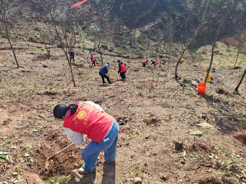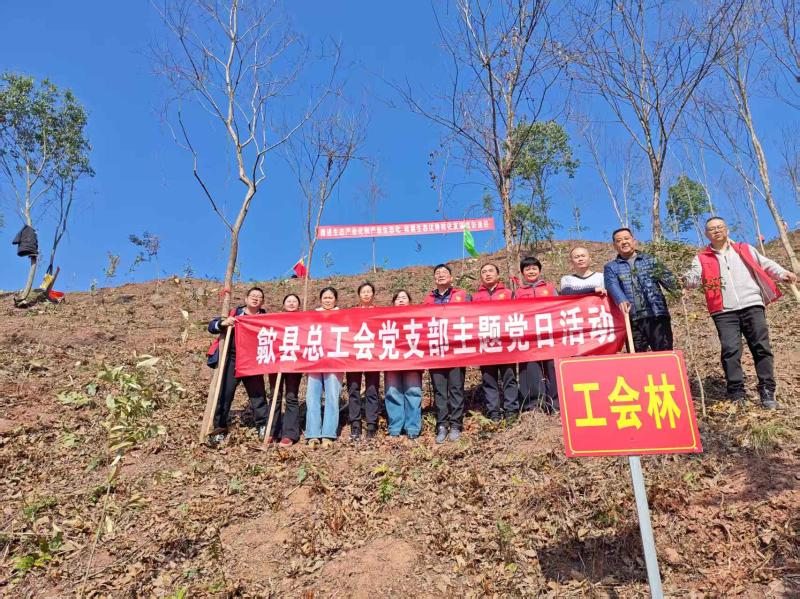 植树现场气氛热烈,干部职工热情高涨、干劲十足。大家分工协作,挥锹铲土、扶苗填坑、踏土固根,每一道工序都做得认真细致、有条不紊,呈现出一派热火朝天的劳动景象。在大家共同努力下,一株株新栽下的树苗迎风挺立,为春日的徽州大地增添了勃勃生机。
