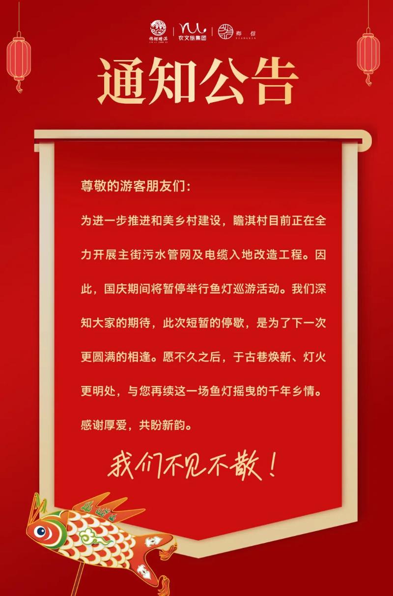 关于瞻淇村国庆期间暂停鱼灯巡游活动的通知