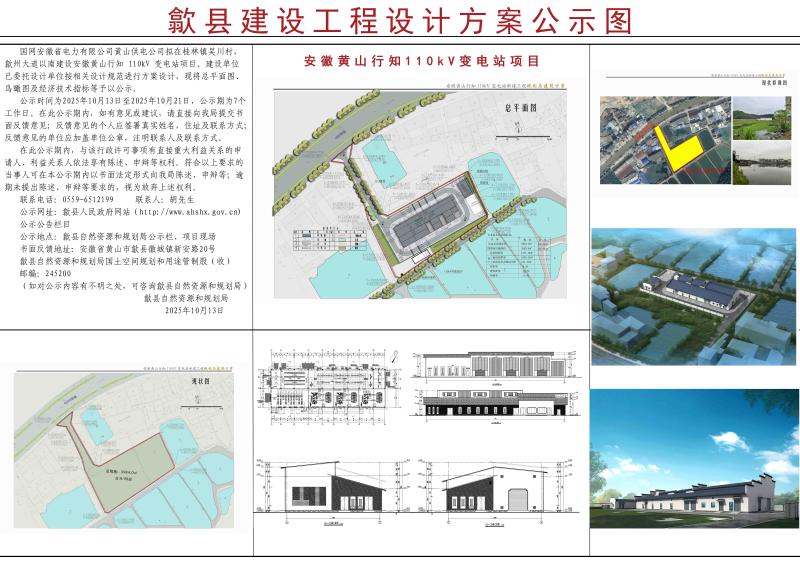 建设项目批前公示——安徽黄山行知110kV变电站项目建设工程设计方案
