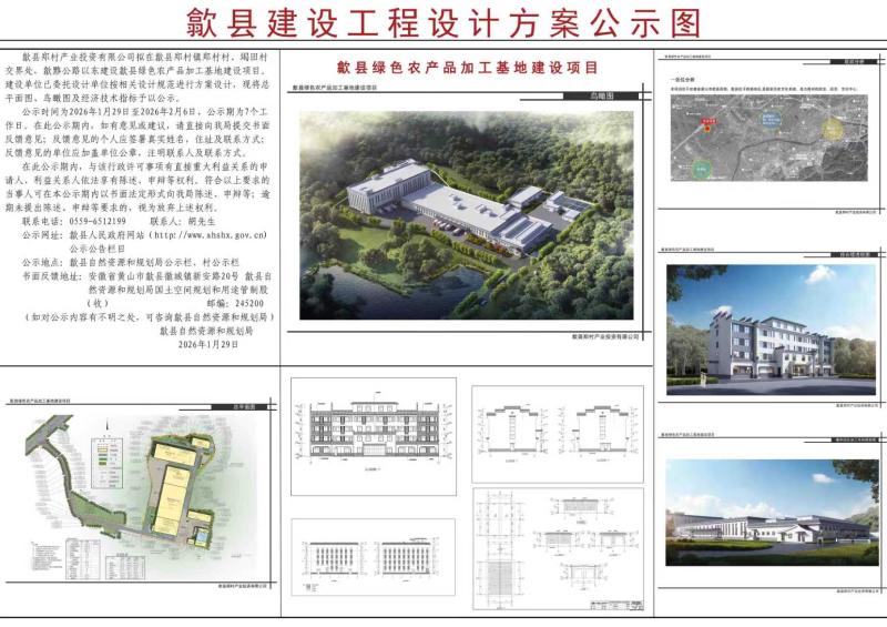 建设项目批前公示——歙县绿色农产品加工基地建设项目建设工程设计方案