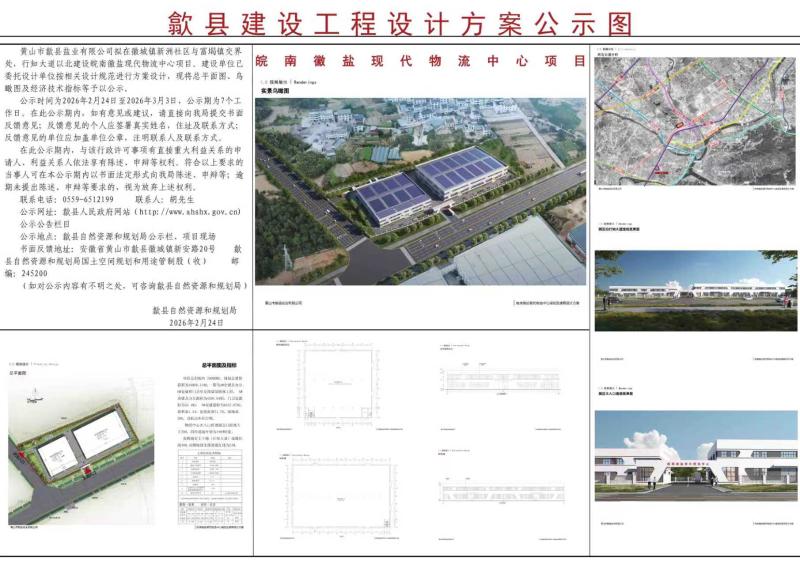 建设项目批前公示——皖南徽盐现代物流中心项目建设工程设计方案