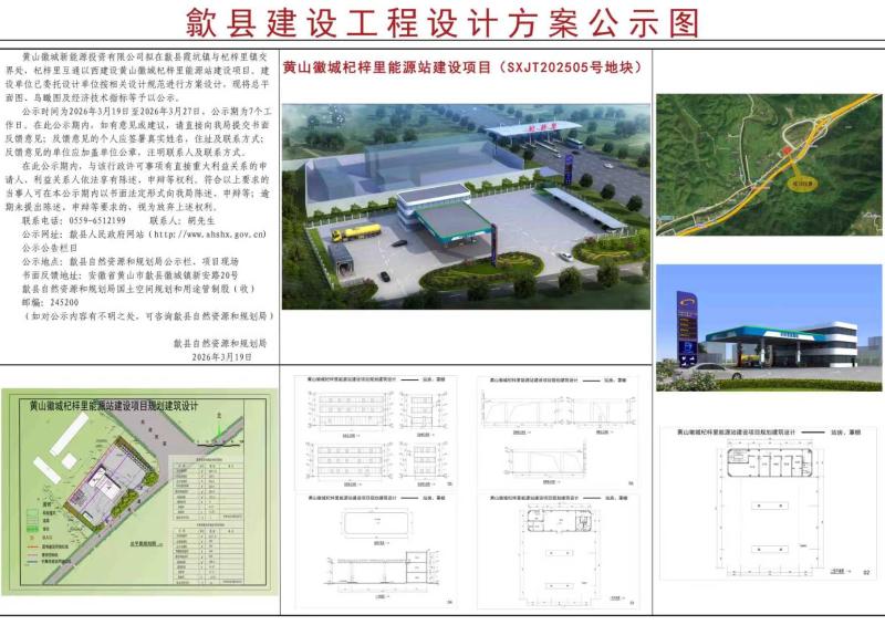 建设项目批前公示——黄山徽城杞梓里能源站建设项目(SXJT202505号地块)建设工程设计方案