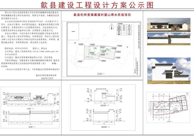 建设项目批前公示——歙县杞梓里镇磻溪村望山得水民宿项目建设工程设计方案