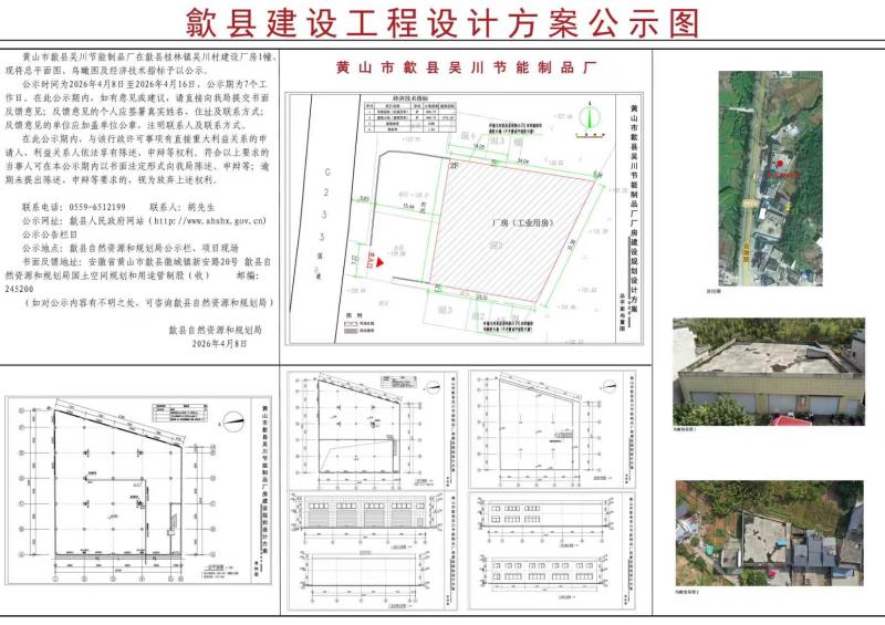 建设项目批前公示——黄山市歙县吴川节能制品厂建设工程设计方案