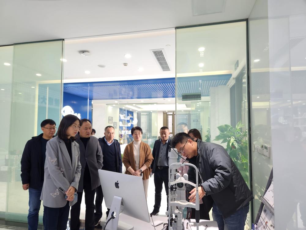 在新眼光集团,林一凡一行深入了解新眼光集团相关专利产品研发、使用、销售情况,沟通洽谈我县文慈眼科医院后期专利合作事项,并就文慈眼科医院后期项目经营达成合作意向。