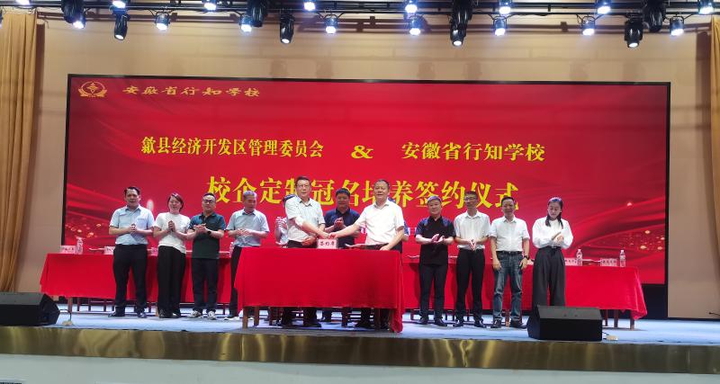 活动现场,安徽省行知学校、县教育局、县经开区管委会相关负责同志先后致辞,从职业教育发展、技能人才培养、校企合作共赢等角度,阐述了“校企定制冠名班”对推动县域职教提质、服务产业发展的重要意义。随后,安徽省行知学校分别与县经开区管委会及4家合作企业签署“校企定制冠名班”合作协议,定制班学生代表与企业分批次签署校企定制三方协议。