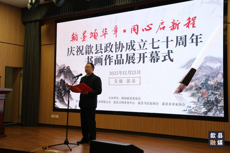 2025年12月23日,歙县政协成立七十周年书画作品展在安徽徽州历史博物馆开幕。县委书记熊志伟出席活动并宣布开幕,县人大常委会主任吴志平,县政协主席吴志良等县四套班子领导参加活动。县政协副主席张冬春主持开幕式。