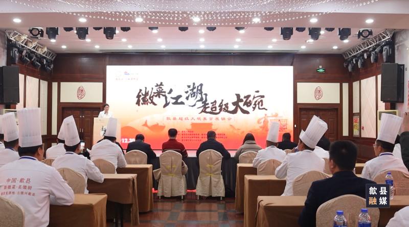2025年12月30日,歙县“超级大碗”徽菜交流推广活动启动。此次活动通过厨艺交流与美食集市相结合的形式,集中展示了徽菜的深厚技艺,为徽菜美食文化的传播与发展搭建了平台。副县长吴文斌出席活动并致辞。
